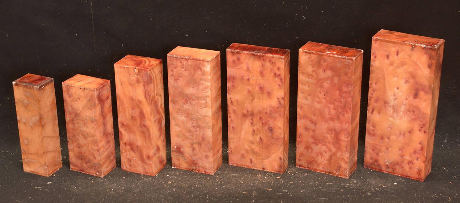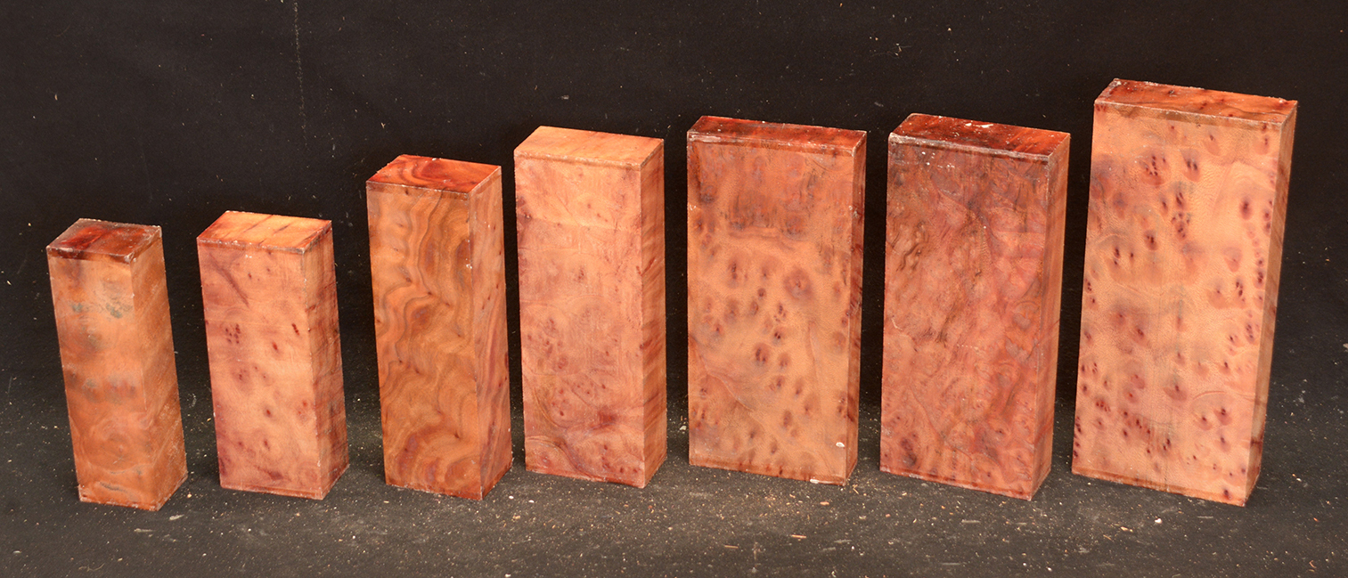 This rare burl is from S.E. Asia and is seldom seen on the world market. It is fine-grained and varies in color from a light reddish-brown to almost scarlet. It is easy to work and has a very pungent, spicy scent. For a burl it is remarkably stable. Green to partially air dried.