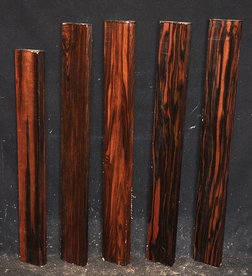 This wood originated from a small, sparsely inhabited island off the east coast of New Guinea. Some of these trees grow to enormous dimensions. One of the first logs we received from here was 3 1/2 feet in diameter, 18 feet long, and weighed 7 tons. It is fine-grained and takes a glassy smooth finish. Most of these pieces have a "marble-cake" look to the end grain that is outstanding.