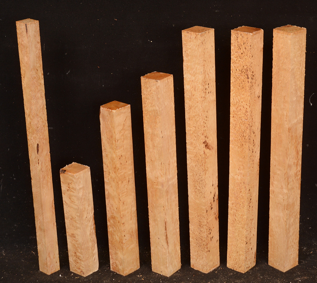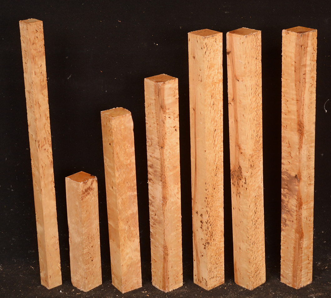 Also called Alpine Burl or Karelian Burl after the Finnish province of Karelia where it is often found. The high figure found in this wood is caused when the tree heals the damage done by an invasive boring beetle. The beetle infestation leaves the trees stunted and sometimes deformed but produces wood with small twists and swirls that highlight the darker, burly figure. Rare.