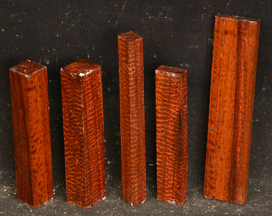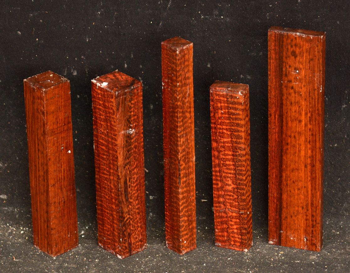 Also called Letterwood and Leopardwood. Color: dark red to reddish brown with irregular black speckles or stripes. Fine textured and highly lustrous. Very hard and heavy, 75-84 lbs/cu ft. Takes a beautiful finish. Very rare and very expensive. Guyana and Surinam.