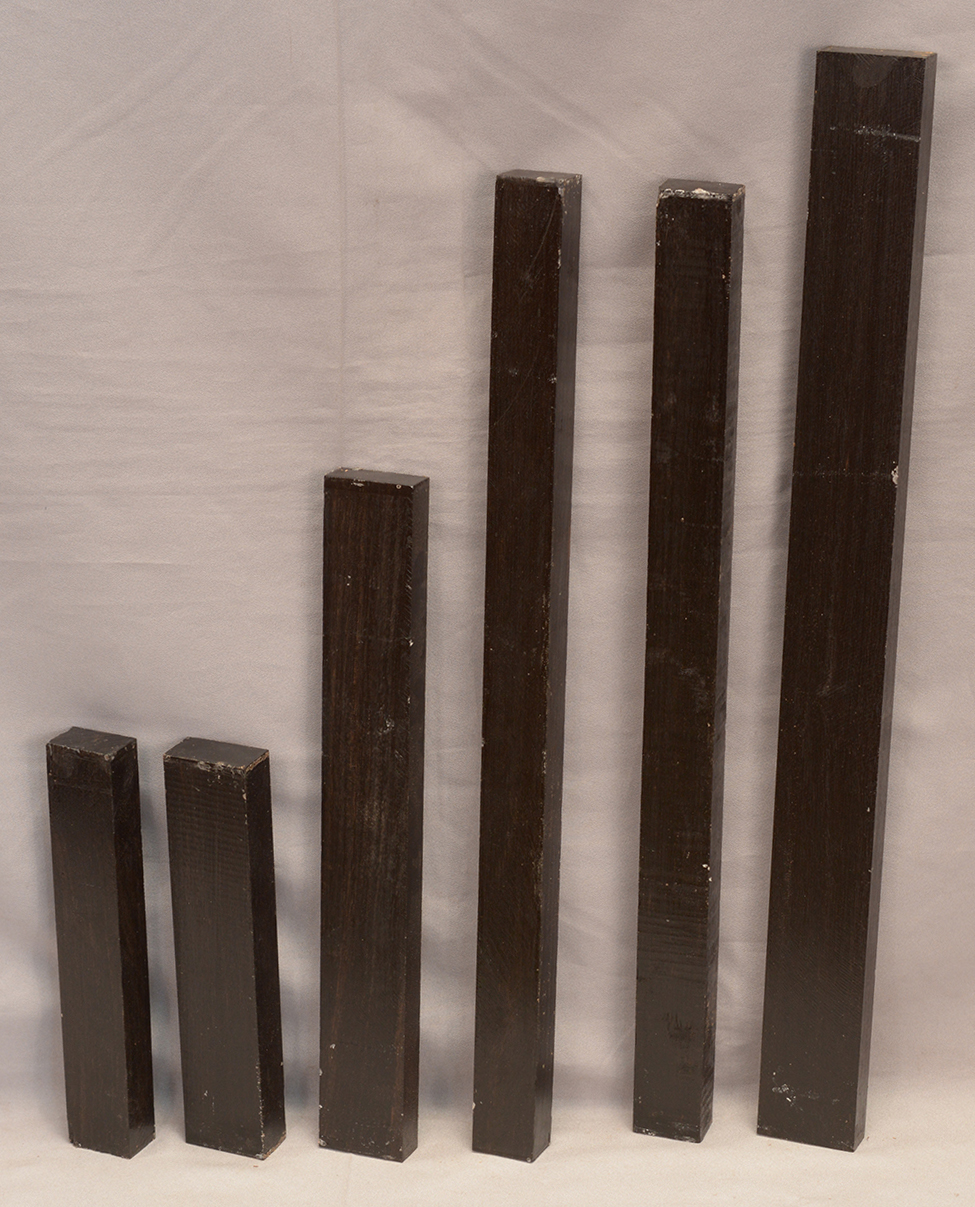 Sometimes called Gabon or Gaboon, this Ebony is sometimes jet black but oftentimes has grayish streaks that mostly disappear when finished or after the made object has been put into service. This Ebony has a marked resistance to checking that is characteristic of some of the Indian and Asian species. It has a wonderful texture and is easily carved, planed, turned, and milled. It is fairly fine-grained and takes a high polish. This Ebony usually originates in either Cameroon or Nigeria and the logs are rough hewn in the forest and oftentimes brought to the nearest road by human porters. With the disappearance of other species of black Ebony this species is fast becoming the Ebony of choice.