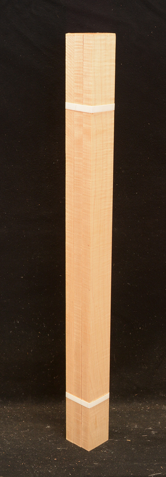 The heartwood is white or cream to light brown or reddish brown. Because of the generally small size of available logs, most sawmills produce flatsawn boards which will show a broken curl on the surface and a fiddleback curl on the quartersawn edge. Hard and heavy, 45 lbs/cu ft. Easy to work and takes a smooth polish. U.S.A.