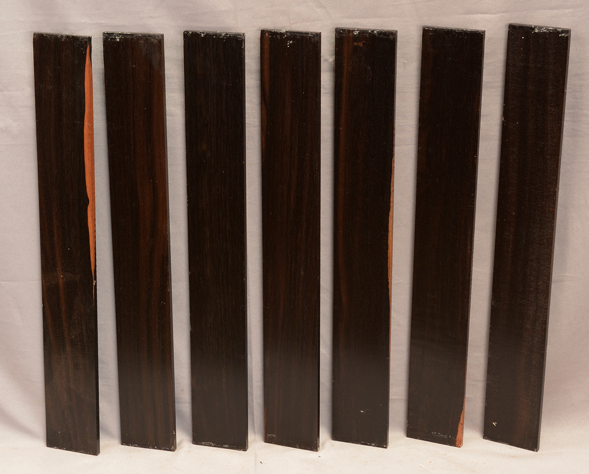 Sometimes called Gabon or Gaboon, this Ebony is sometimes jet black but oftentimes has grayish streaks that mostly disappear when finished or after the made object has been put into service. This Ebony has a marked resistance to checking that is characteristic of some of the Indian and Asian species. It has a wonderful texture and is easily carved, planed, turned, and milled. It is fairly fine-grained and takes a high polish. This Ebony usually originates in either Cameroon or Nigeria and the logs are rough hewn in the forest and oftentimes brought to the nearest road by human porters. With the disappearance of other species of black Ebony this species is fast becoming the Ebony of choice.
