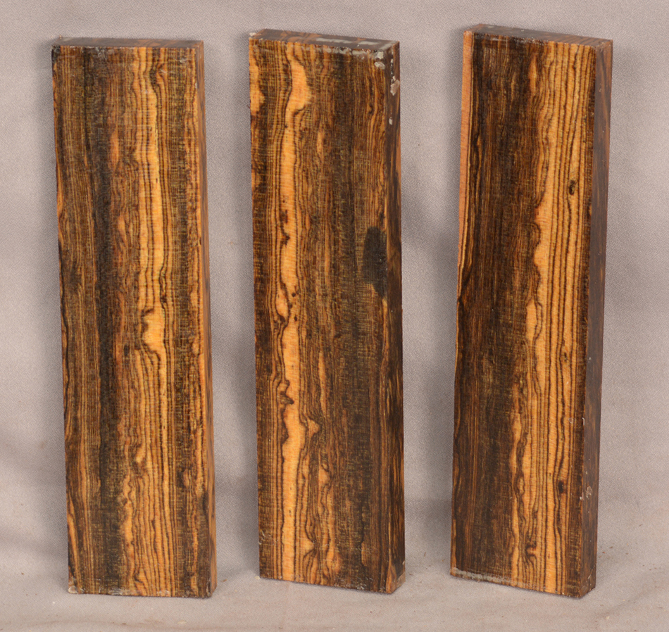 Bocote is an oily wood with a yellowish to dark brown color accented with irregular black stripes and streaks. It has a spicy smell and is hard, heavy and strong. It is easy to work and takes a very nice polish. This beautiful wood is seldom seen in woodworker's shops.