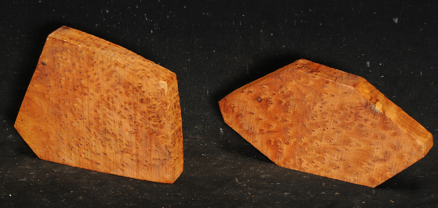 This comes from the Atlas mountains in Morocco and has a beautiful golden chatoyance. Its color varies from a rich, lustrous golden brown to nearly black. Thuya burl is hard and dense with a high oil content, but tends to be brittle. The eyes, perfectly round, are scattered about in some burls like the figure in bird's-eye maple; in others they are grouped as islands. Due to it's desert occurrence, the wood sometimes contains small defects or inclusions but most can be repaired with cyanoacrylate (super) glues. A rare species, this exquisite wood is used for inlays, small boxes, turnery, and precious objects.