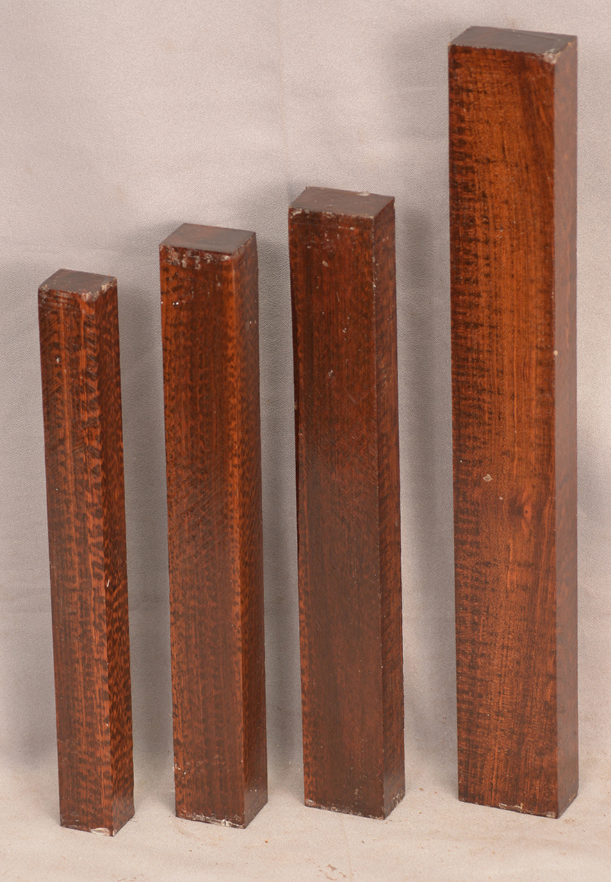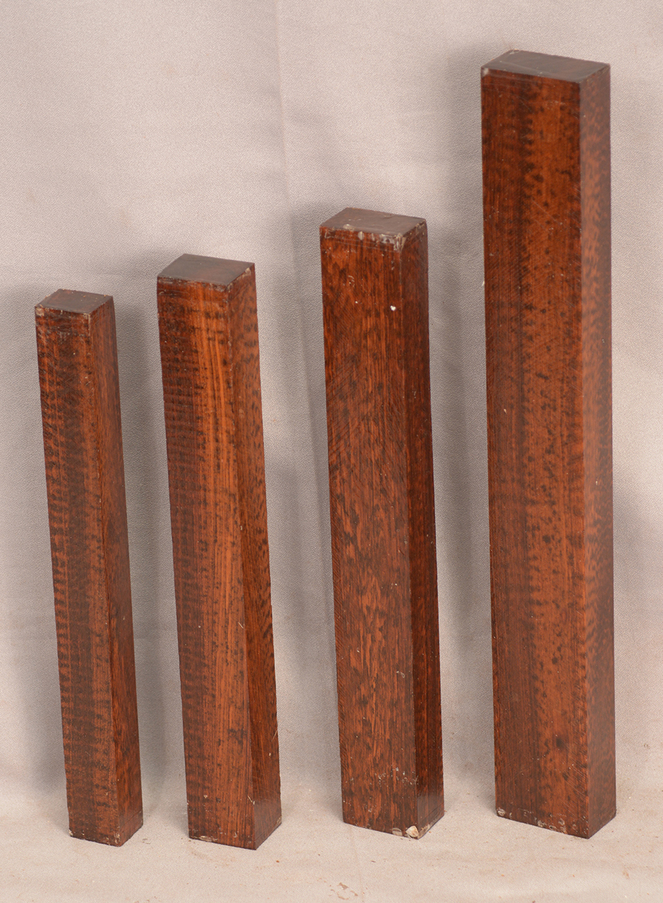 Also called Letterwood and Leopardwood. Color: dark red to reddish brown with irregular black speckles or stripes. Fine textured and highly lustrous. Very hard and heavy, 75-84 lbs/cu ft. Takes a beautiful finish. Very rare and very expensive. Guyana and Surinam.