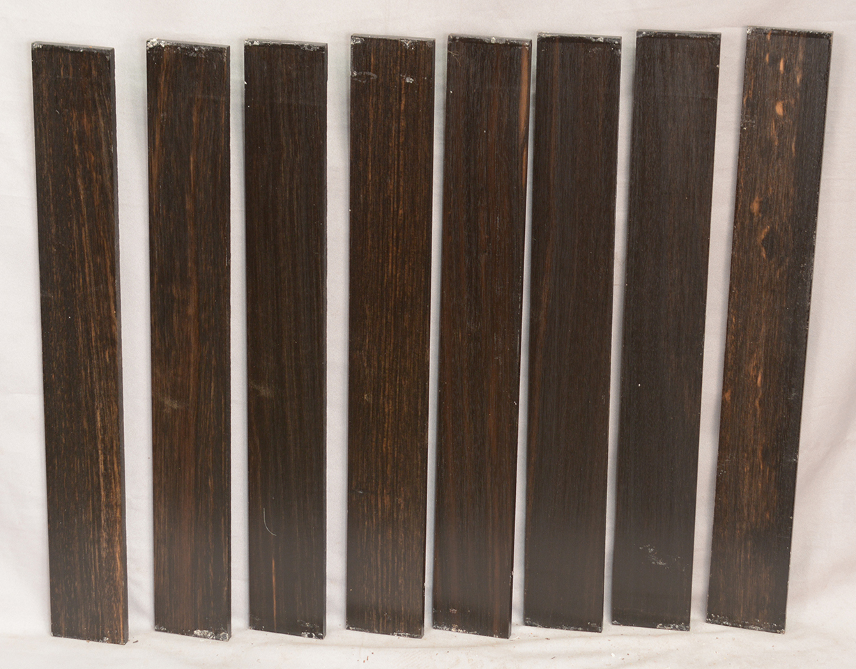Sometimes called Gabon or Gaboon, this Ebony is sometimes jet black but oftentimes has grayish streaks that mostly disappear when finished or after the made object has been put into service. This Ebony has a marked resistance to checking that is characteristic of some of the Indian and Asian species. It has a wonderful texture and is easily carved, planed, turned, and milled. It is fairly fine-grained and takes a high polish. This Ebony usually originates in either Cameroon or Nigeria and the logs are rough hewn in the forest and oftentimes brought to the nearest road by human porters. With the disappearance of other species of black Ebony this species is fast becoming the Ebony of choice.