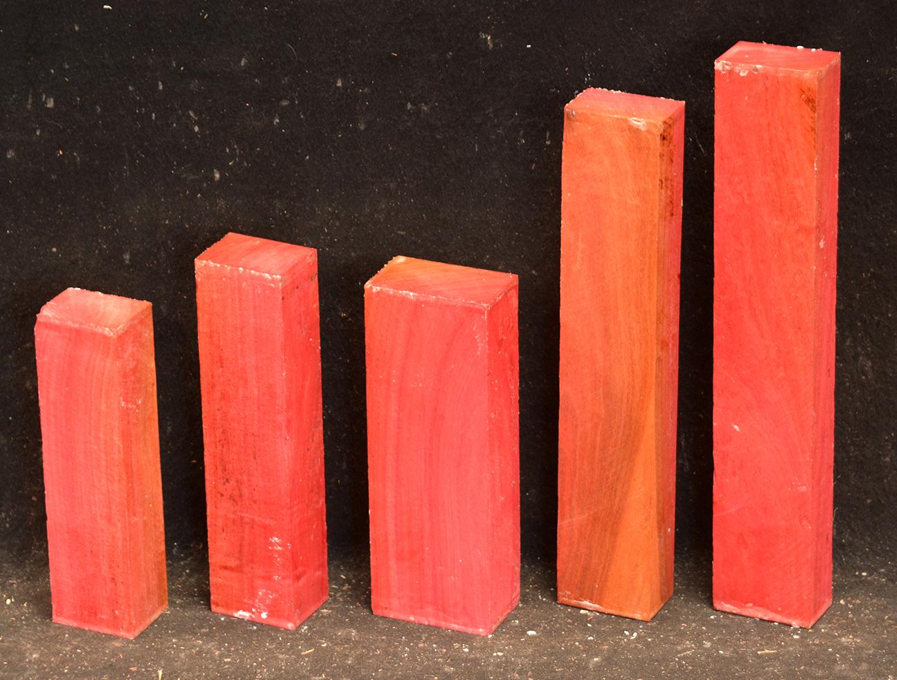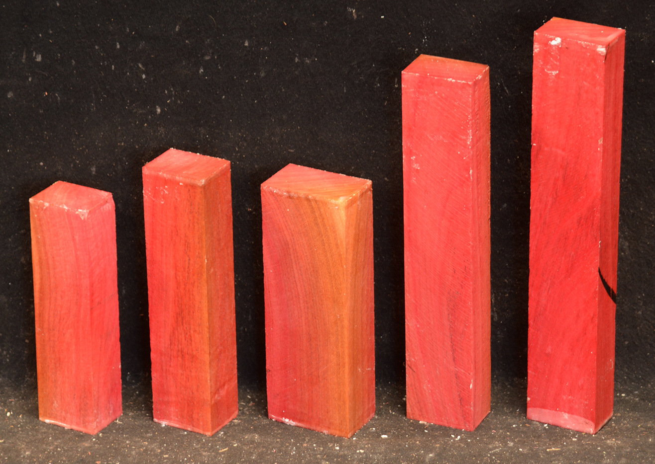 A fairly rare wood from Southern Africa ranging in color from light pink to watermelon red. At one time it was described as being "rarer than diamonds". It is very dense, hard and heavy and takes a very high polish. Beautiful for turnery, inlays and other precious items.