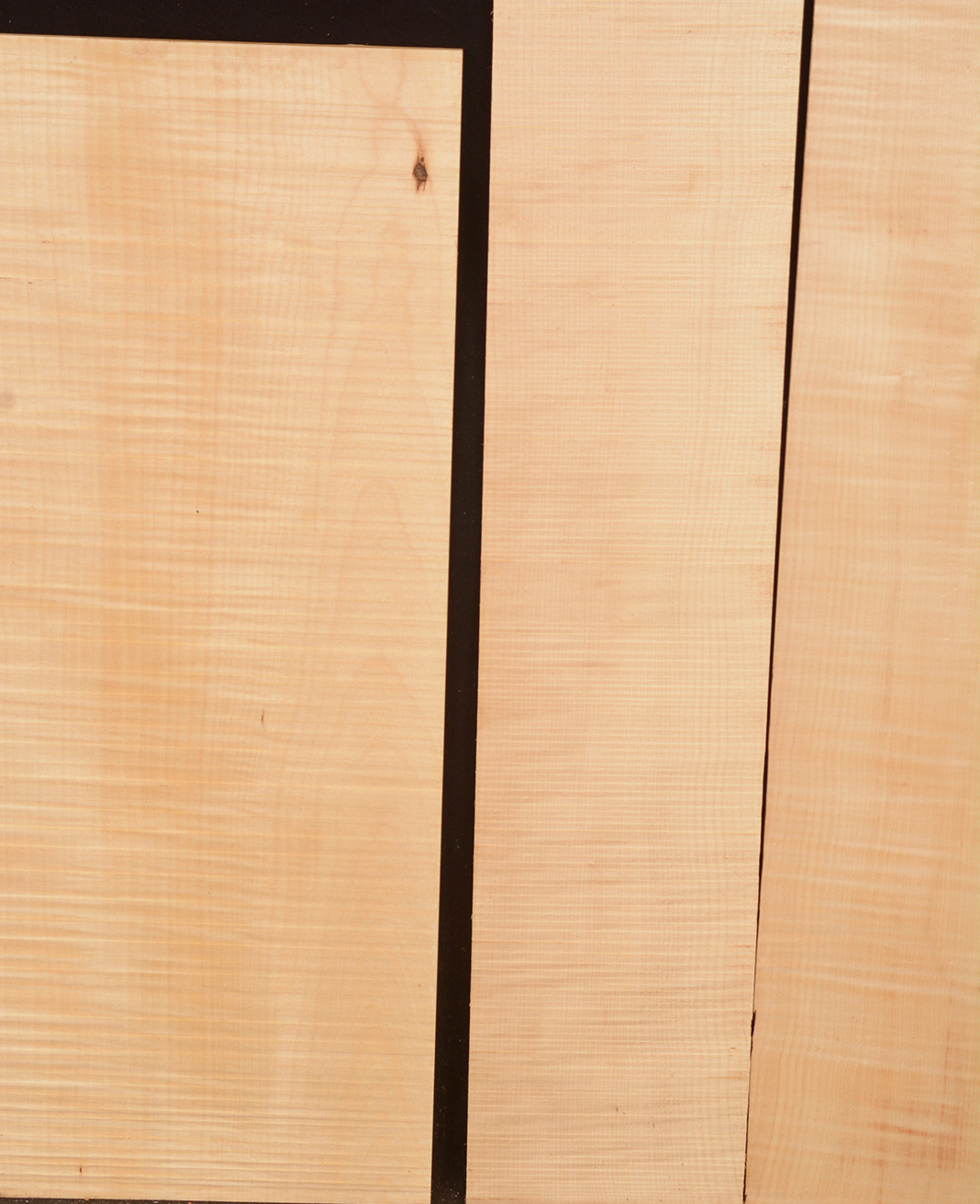 This European Maple is native to central Europe and west Asia. It is a tough, white or cream colored, fine-grained timber. It reminds me of vanilla ice cream because it is so even-colored. It works well in any grain direction. It is used for musical instruments, furniture, cabinetry, and because it is non-staining it is used for kitchen utensils, wooden spoons, rolling pins, and cutting boards. The figure is fiddleback on the quartersawn surface and more of a broken curl on the flatsawn surface. Select, quartersawn material is used for violin backs and sides and necks. Dry.