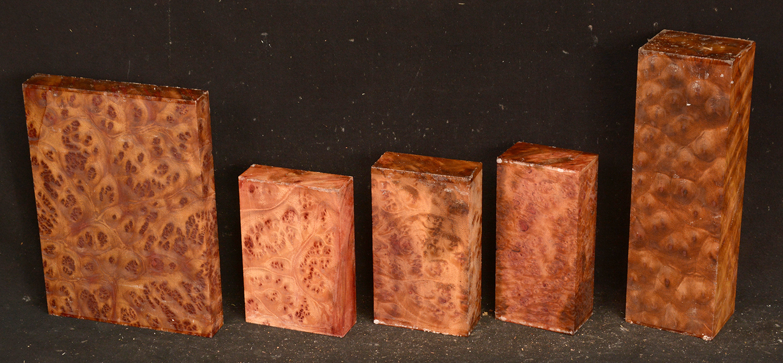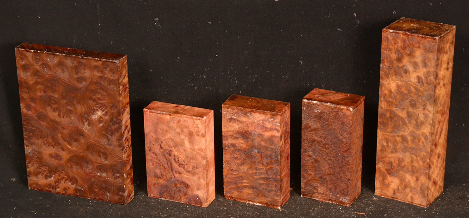 This rare burl is from S.E. Asia and is seldom seen on the world market. It is fine-grained and varies in color from a light reddish-brown to almost scarlet. It is easy to work and has a very pungent, spicy scent. For a burl it is remarkably stable. Green to partially air dried.