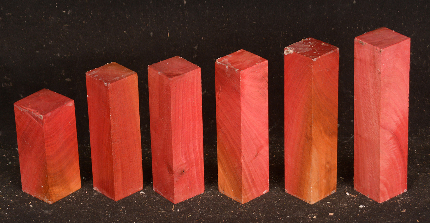 A fairly rare wood from Southern Africa ranging in color from light pink to watermelon red. At one time it was described as being "rarer than diamonds". It is very dense, hard and heavy and takes a very high polish. Beautiful for turnery, inlays and other precious items.