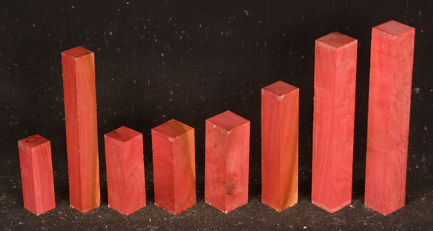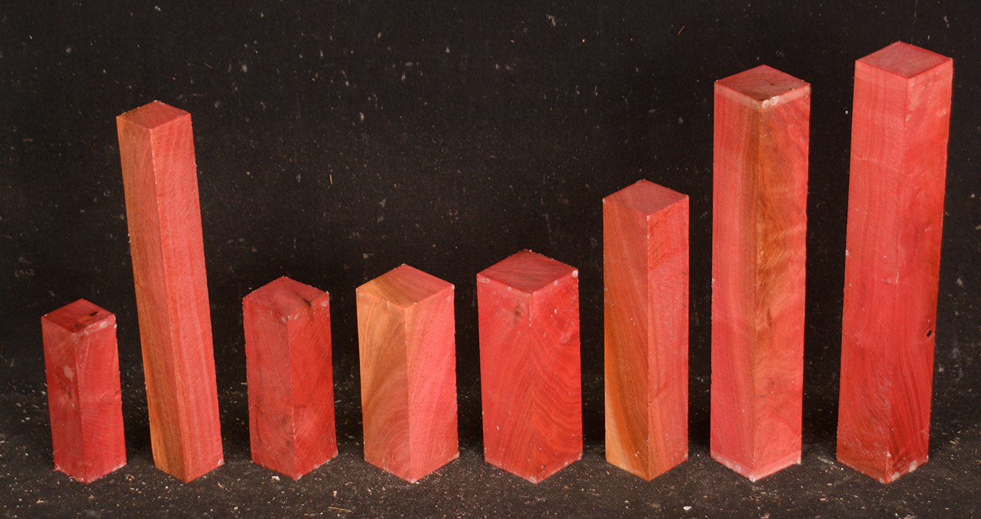 A fairly rare wood from Southern Africa ranging in color from light pink to watermelon red. At one time it was described as being "rarer than diamonds". It is very dense, hard and heavy and takes a very high polish. Beautiful for turnery, inlays and other precious items.