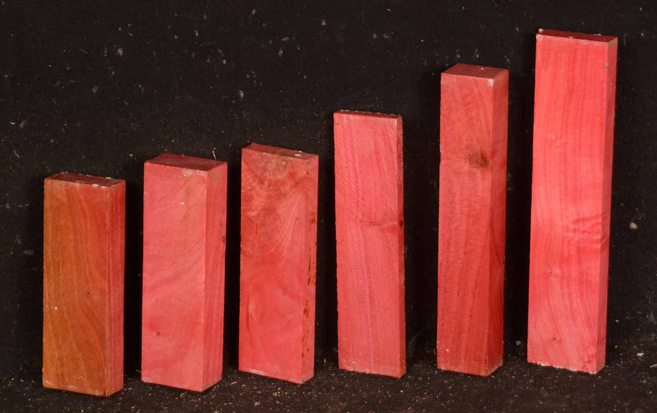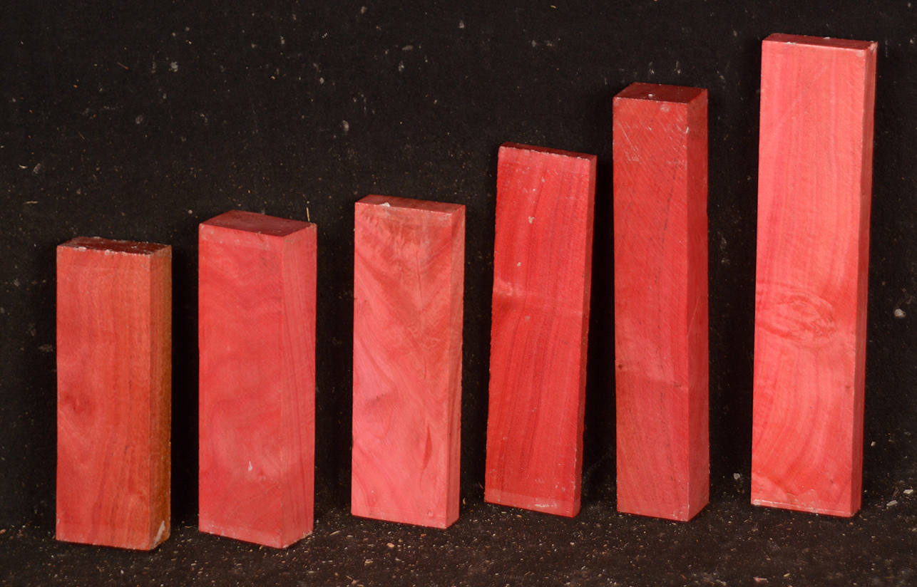 A fairly rare wood from Southern Africa ranging in color from light pink to watermelon red. At one time it was described as being "rarer than diamonds". It is very dense, hard and heavy and takes a very high polish. Beautiful for turnery, inlays and other precious items.