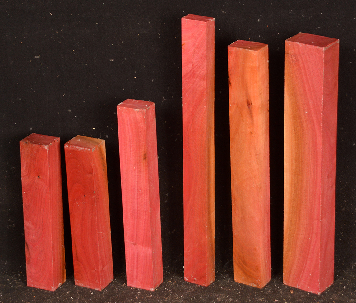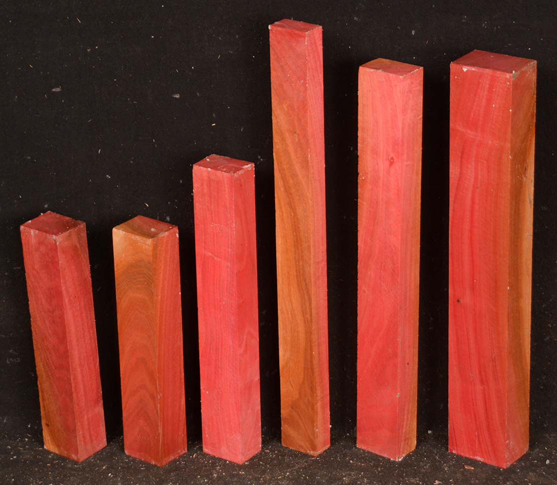 A fairly rare wood from Southern Africa ranging in color from light pink to watermelon red. At one time it was described as being "rarer than diamonds". It is very dense, hard and heavy and takes a very high polish. Beautiful for turnery, inlays and other precious items.