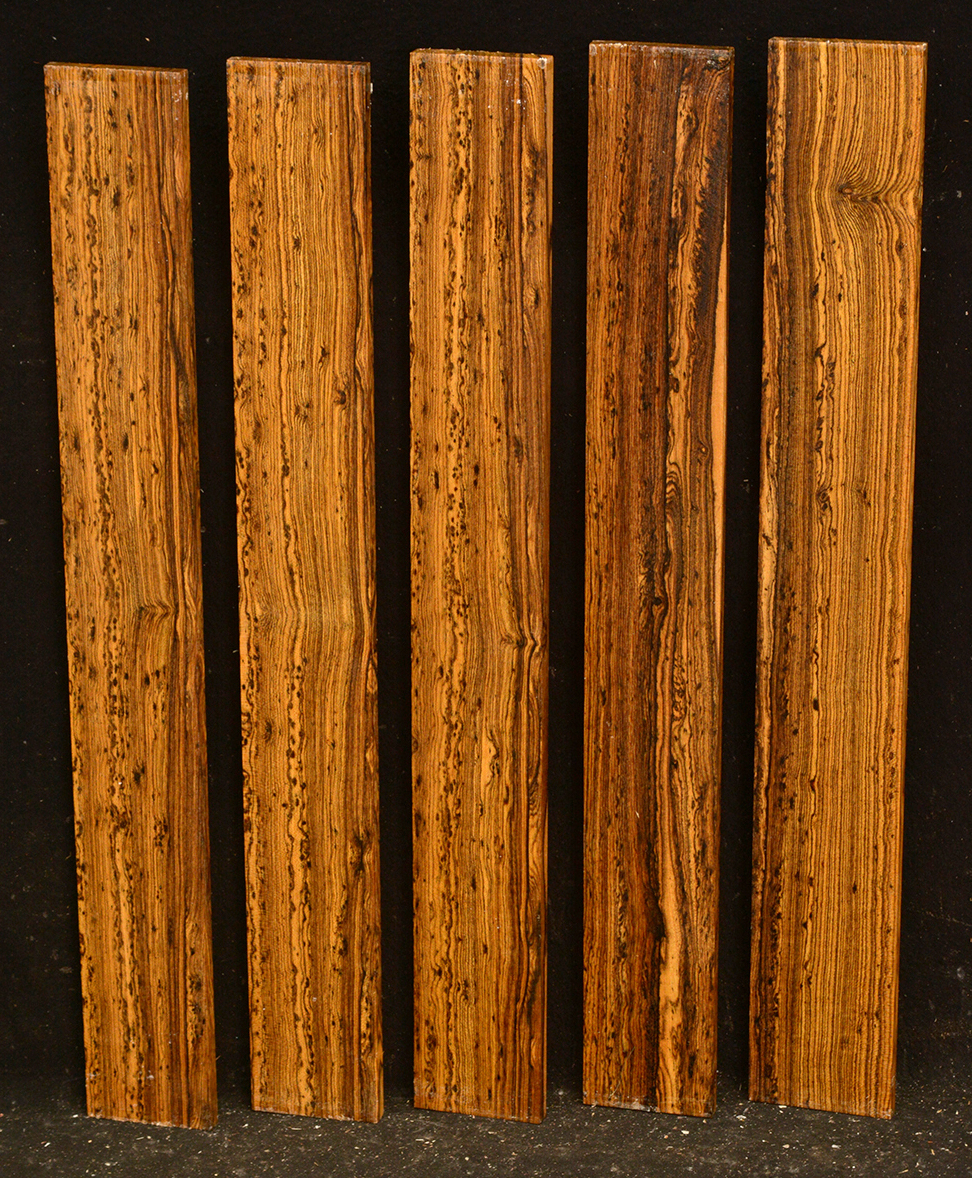 Bocote is an oily wood with a yellowish to dark brown color accented with irregular black stripes and streaks. It has a spicy smell and is hard, heavy and strong. It is easy to work and takes a very nice polish. This beautiful wood is seldom seen in woodworker's shops.