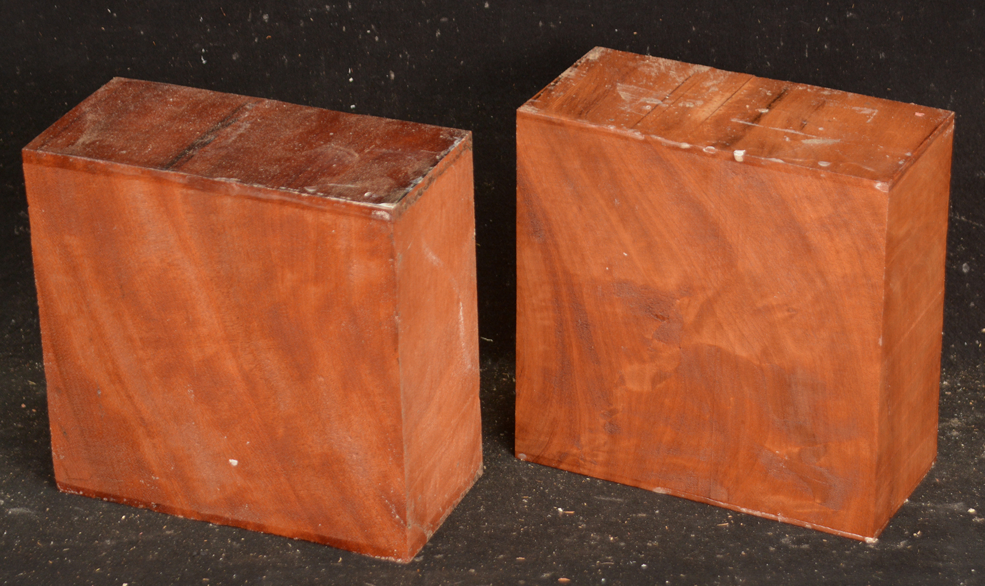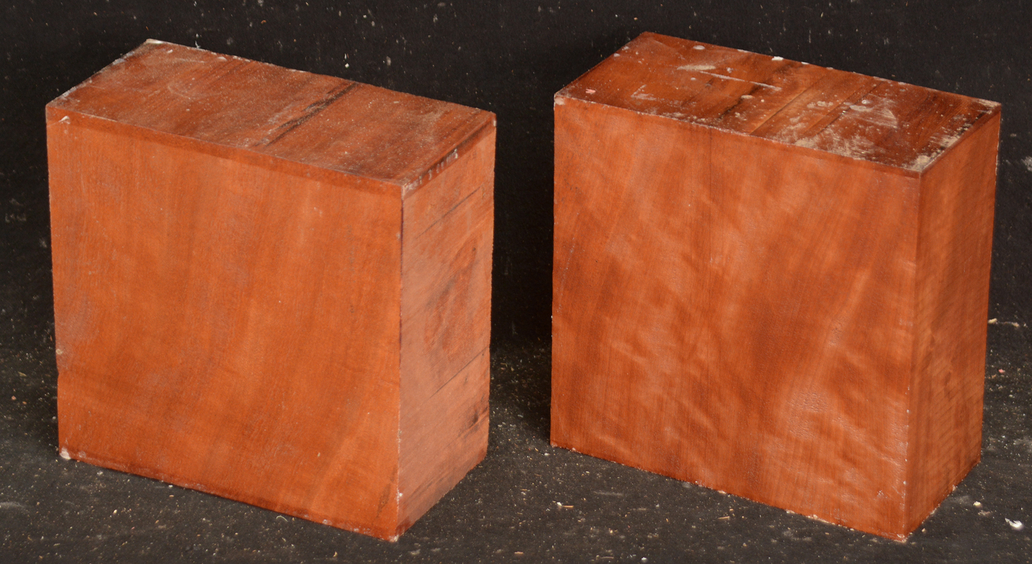 This beautifully figured board is from a log found in Gabon. The figure is a cross between pomelle and quilt-very bold. It is very fine-grained and takes a nice polish. This board was cut near the outside of the log where the figure is strongest.