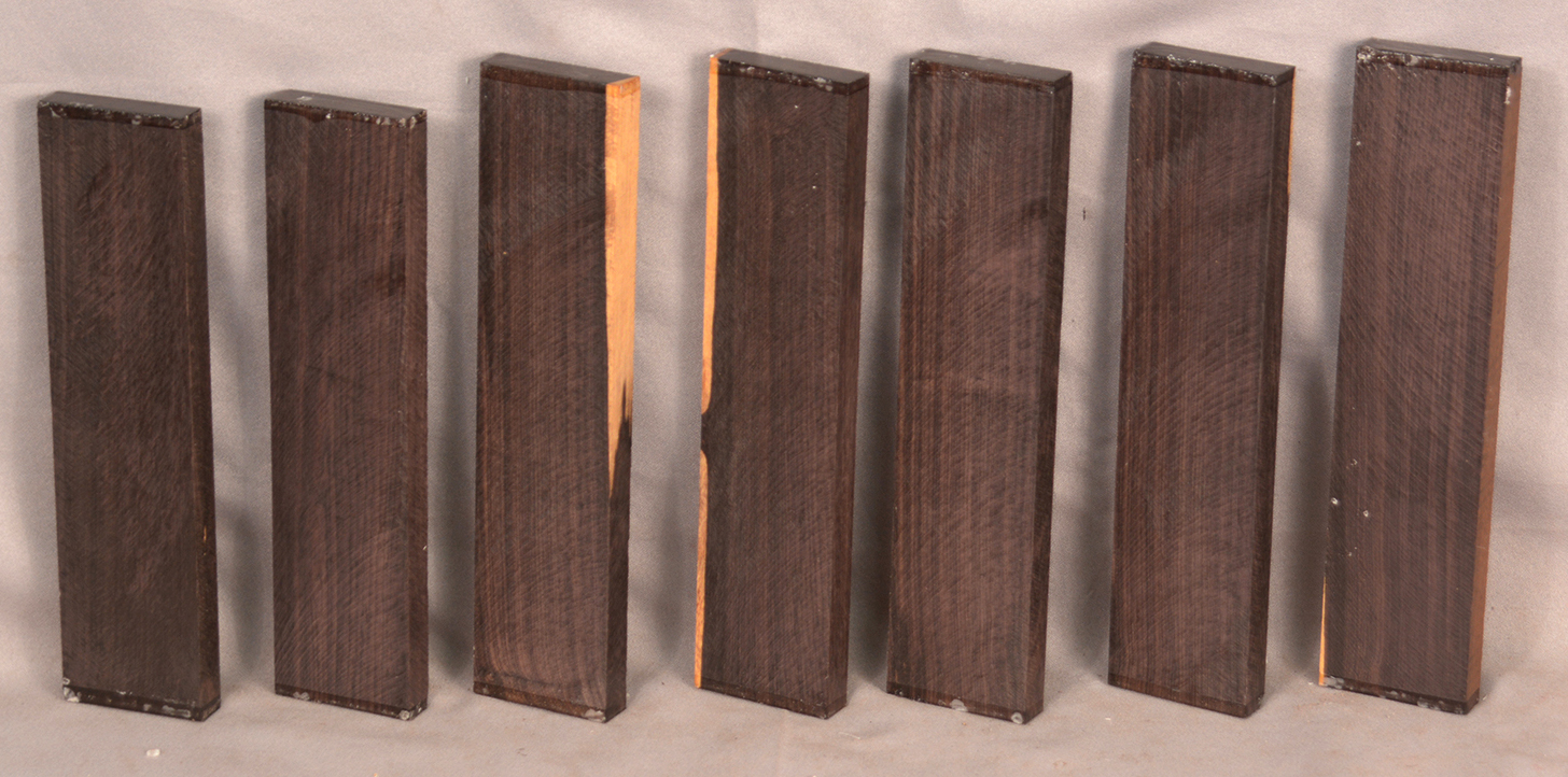 The heartwood is purplish to brownish-black with dark gray streaks giving an overall impression of being black. Lustrous with an attractive inner chatoyance. Very hard, heavy, close-grained, and virtually free from pores. Its stability and lovely tonal qualities make it an excellent instrument wood.