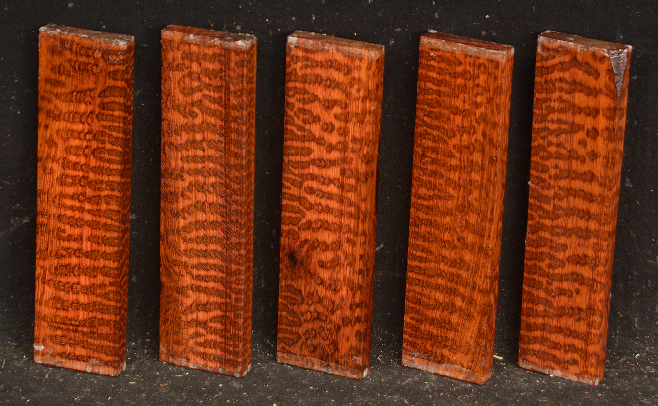 Also called Letterwood and Leopardwood. Color: dark red to reddish brown with irregular black speckles or stripes. Fine textured and highly lustrous. Very hard and heavy, 75-84 lbs/cu ft. Takes a beautiful finish. Very rare and very expensive. Guyana and Surinam.
