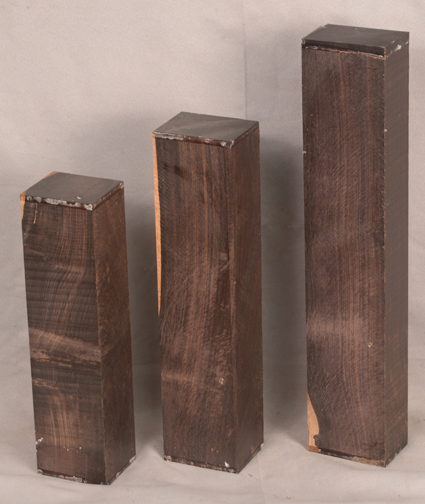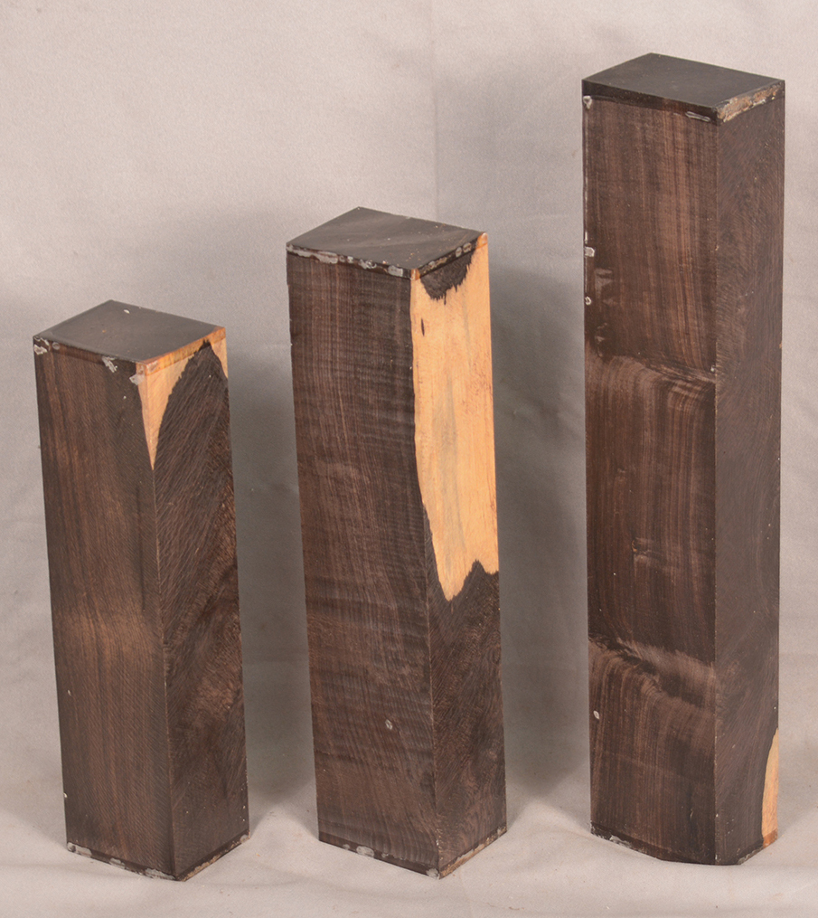 The heartwood is purplish to brownish-black with dark gray streaks giving an overall impression of being black. Lustrous with an attractive inner chatoyance. Very hard, heavy, close-grained, and virtually free from pores. Its stability and lovely tonal qualities make it an excellent instrument wood.