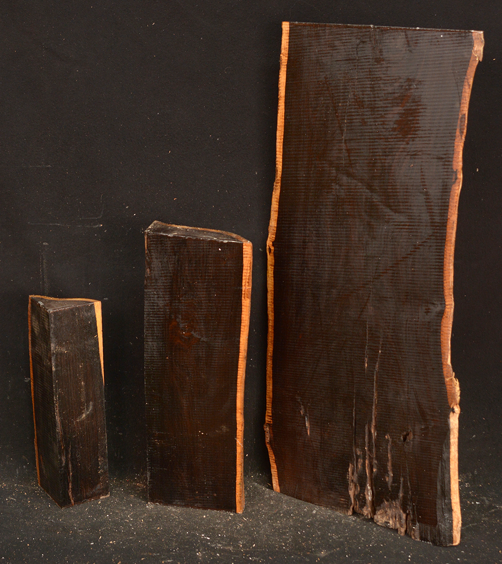 The heartwood is purplish to brownish-black with dark gray streaks giving an overall impression of being black. Lustrous with an attractive inner chatoyance. Very hard, heavy, close-grained, and virtually free from pores. Its stability and lovely tonal qualities make it an excellent instrument wood.