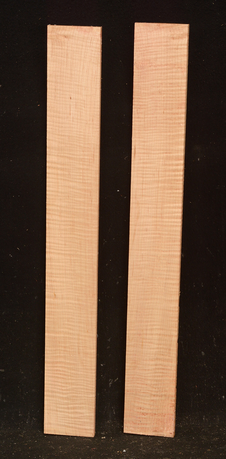 The heartwood is white or cream to light brown or reddish brown. Because of the generally small size of available logs, most sawmills produce flatsawn boards which will show a broken curl on the surface and a fiddleback curl on the quartersawn edge. Hard and heavy, 45 lbs/cu ft. Easy to work and takes a smooth polish. U.S.A.