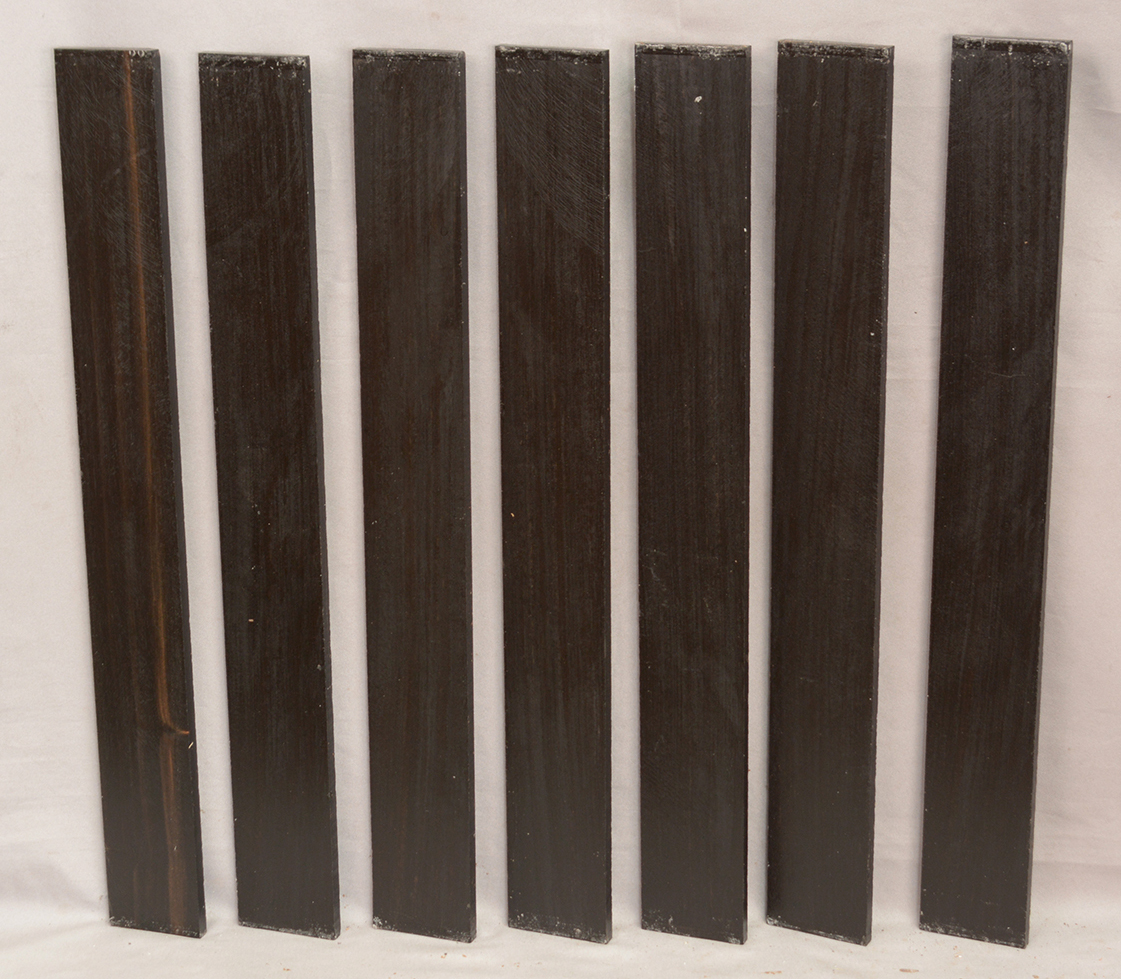 Sometimes called Gabon or Gaboon, this Ebony is sometimes jet black but oftentimes has grayish streaks that mostly disappear when finished or after the made object has been put into service. This Ebony has a marked resistance to checking that is characteristic of some of the Indian and Asian species. It has a wonderful texture and is easily carved, planed, turned, and milled. It is fairly fine-grained and takes a high polish. This Ebony usually originates in either Cameroon or Nigeria and the logs are rough hewn in the forest and oftentimes brought to the nearest road by human porters. With the disappearance of other species of black Ebony this species is fast becoming the Ebony of choice.