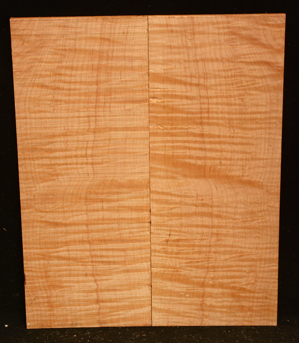 The heartwood is white or cream to light brown or reddish brown. Because of the generally small size of available logs, most sawmills produce flatsawn boards which will show a broken curl on the surface and a fiddleback curl on the quartersawn edge. Hard and heavy, 45 lbs/cu ft. Easy to work and takes a smooth polish. U.S.A.