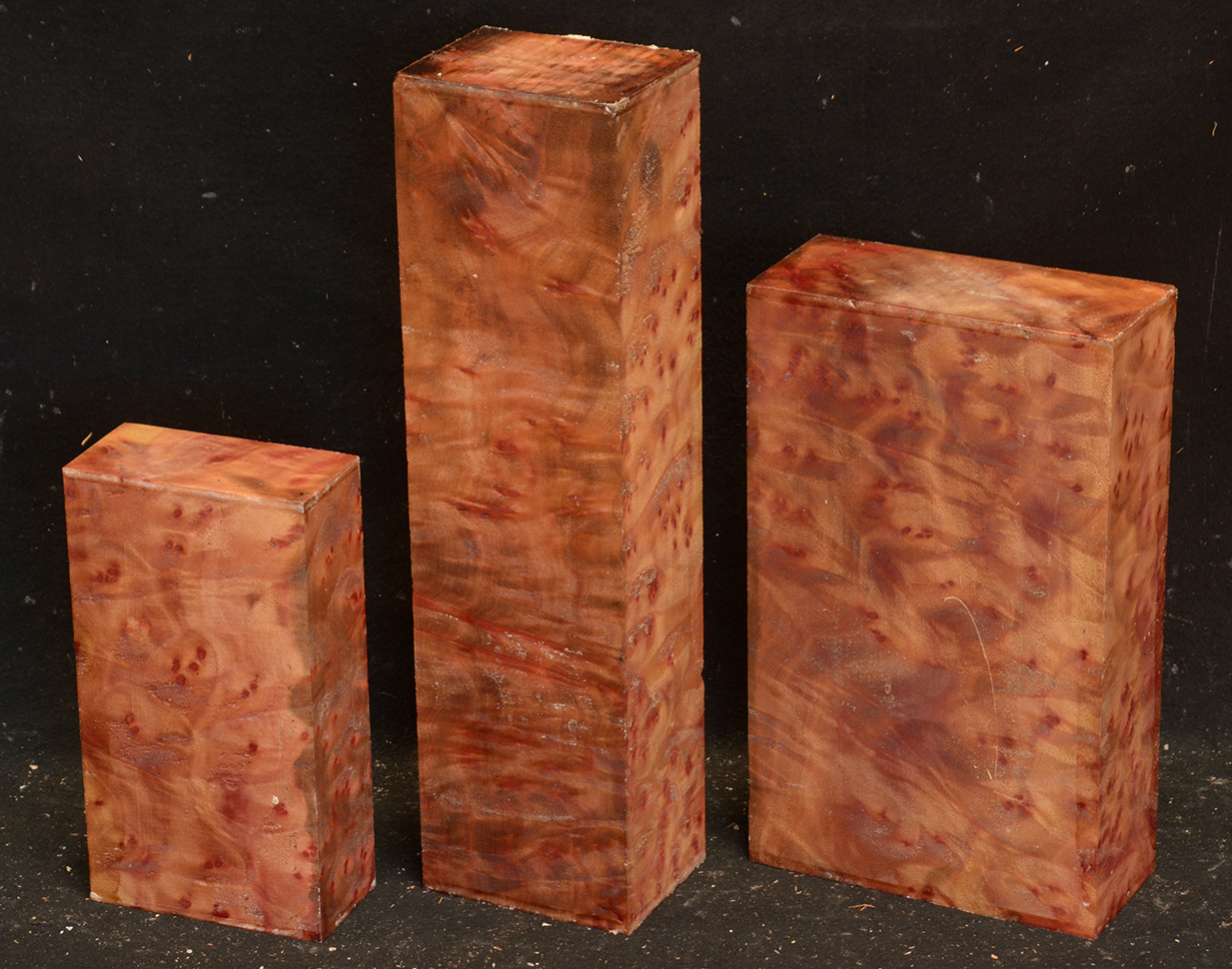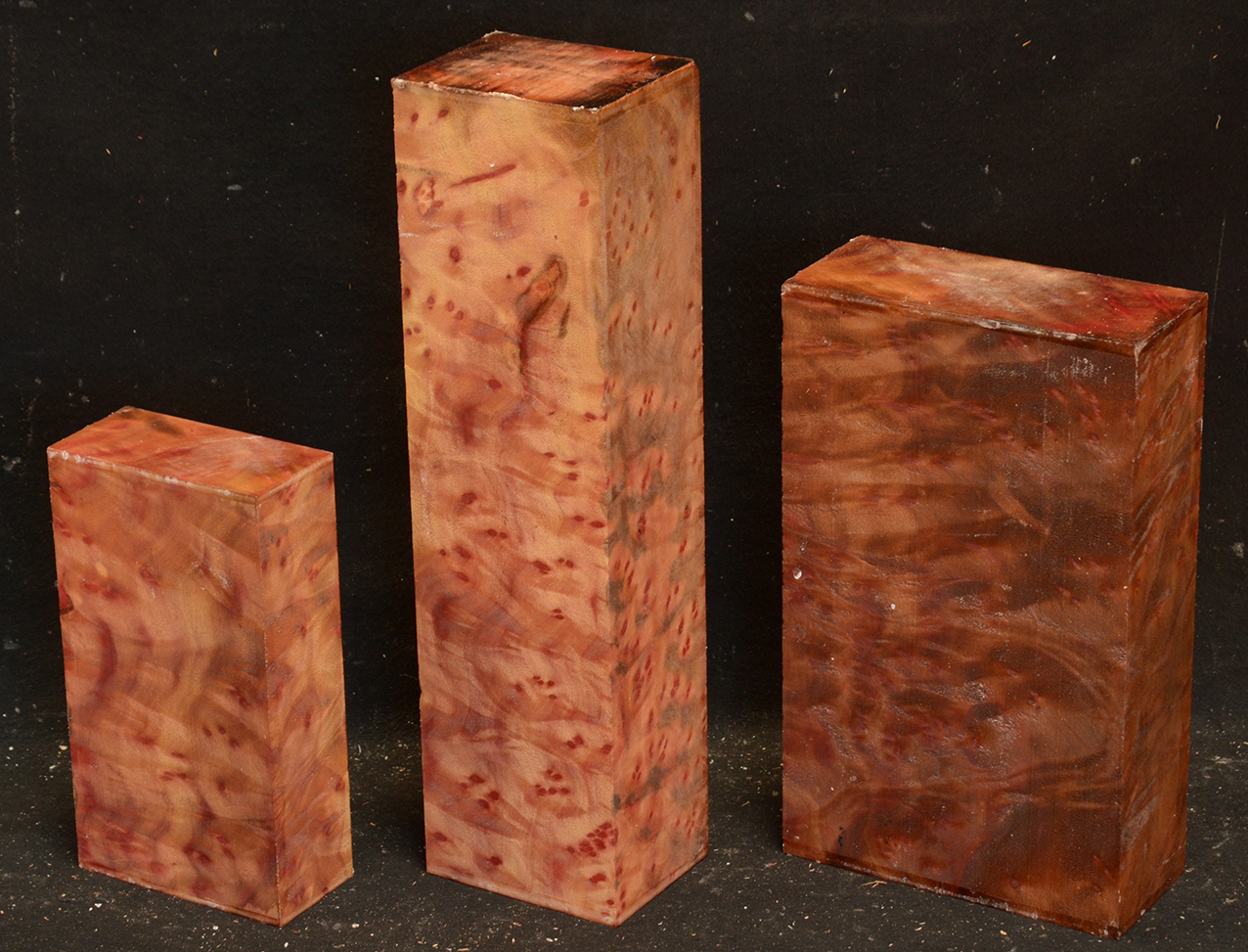 This rare burl is from S.E. Asia and is seldom seen on the world market. It is fine-grained and varies in color from a light reddish-brown to almost scarlet. It is easy to work and has a very pungent, spicy scent. For a burl it is remarkably stable. Green to partially air dried.