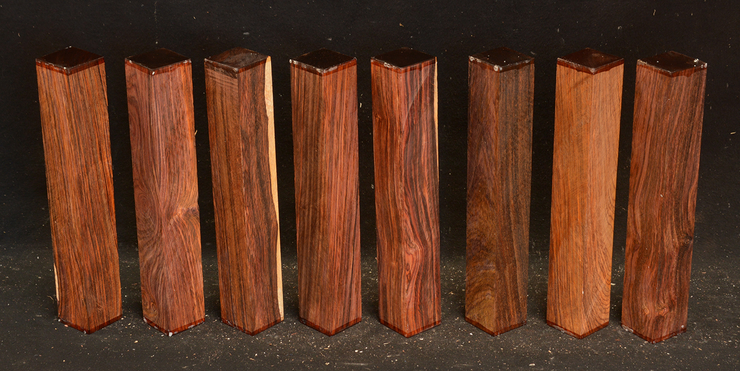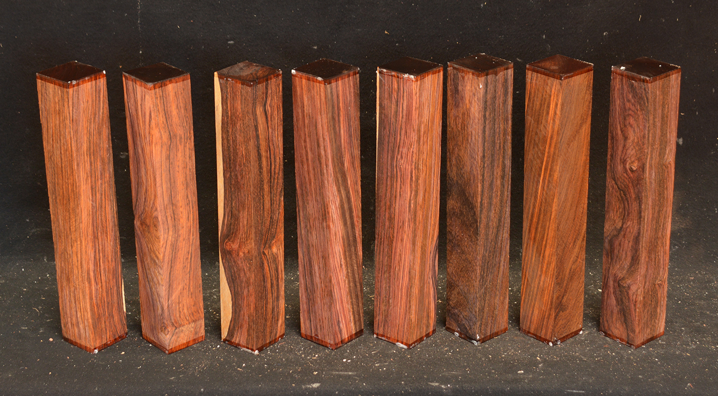 These are from very old stock that we stored away many years ago. This is the best looking Cocobolo with a beautiful orange to reddish-orange color oftentimes with black striping and burly grain. We have milled these and trimmed any defects off the ends. These are as nice as it gets. Fairly rare and probably impossible to replace.