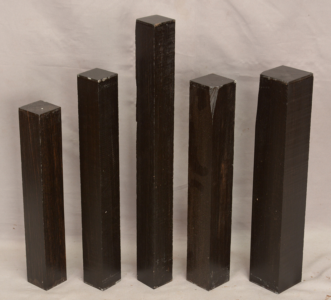 Sometimes called Gabon or Gaboon, this Ebony is sometimes jet black but oftentimes has grayish streaks that mostly disappear when finished or after the made object has been put into service. This Ebony has a marked resistance to checking that is characteristic of some of the Indian and Asian species. It has a wonderful texture and is easily carved, planed, turned, and milled. It is fairly fine-grained and takes a high polish. This Ebony usually originates in either Cameroon or Nigeria and the logs are rough hewn in the forest and oftentimes brought to the nearest road by human porters. With the disappearance of other species of black Ebony this species is fast becoming the Ebony of choice.