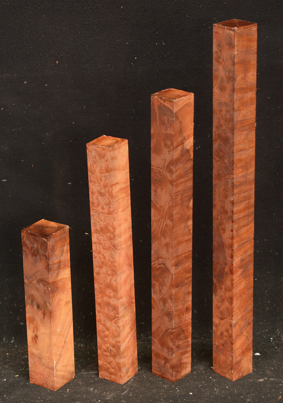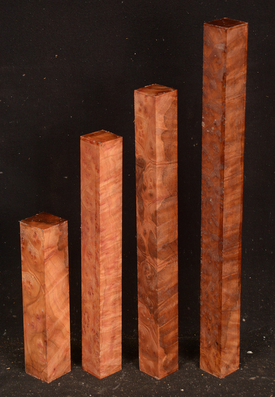 This rare burl is from S.E. Asia and is seldom seen on the world market. It is fine-grained and varies in color from a light reddish-brown to almost scarlet. It is easy to work and has a very pungent, spicy scent. For a burl it is remarkably stable. Green to partially air dried.