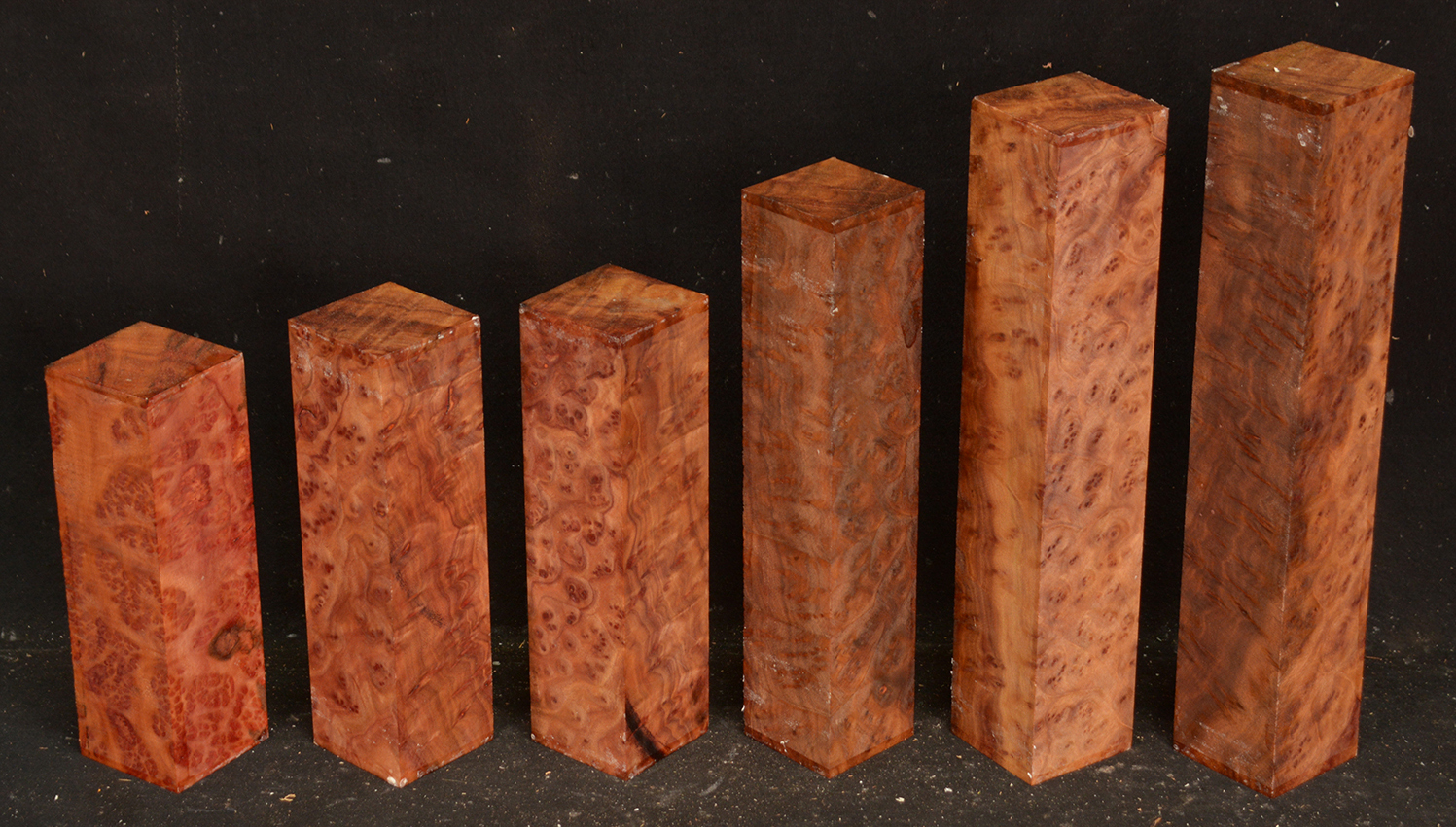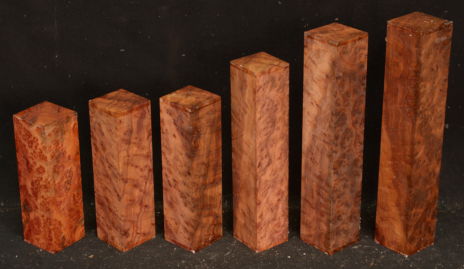 This rare burl is from S.E. Asia and is seldom seen on the world market. It is fine-grained and varies in color from a light reddish-brown to almost scarlet. It is easy to work and has a very pungent, spicy scent. For a burl it is remarkably stable. Green to partially air dried.