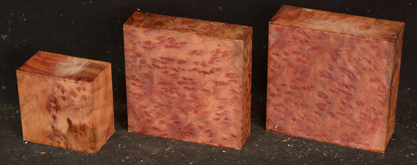 This rare burl is from S.E. Asia and is seldom seen on the world market. It is fine-grained and varies in color from a light reddish-brown to almost scarlet. It is easy to work and has a very pungent, spicy scent. For a burl it is remarkably stable. Green to partially air dried.