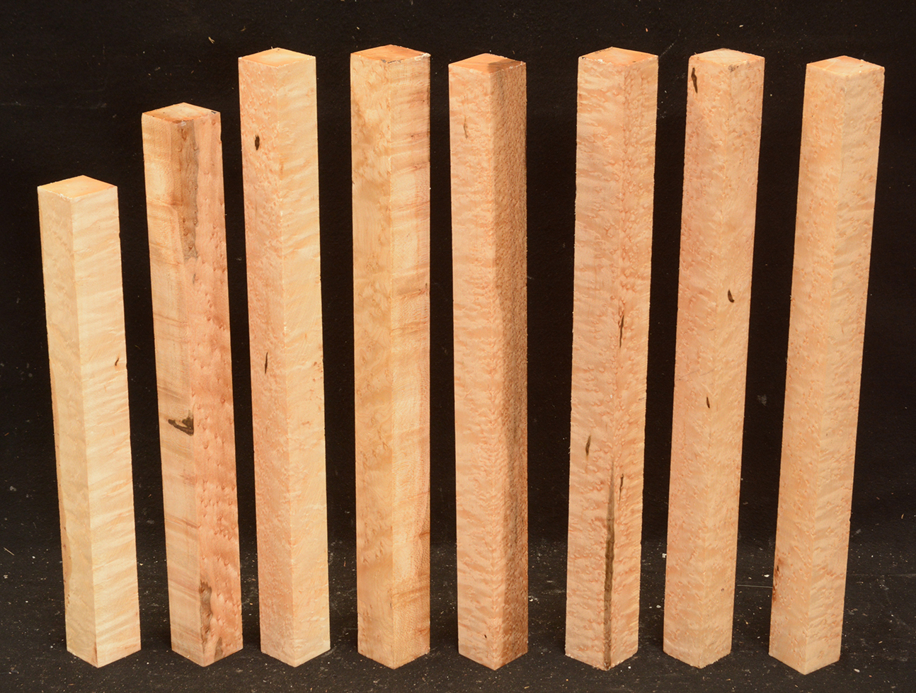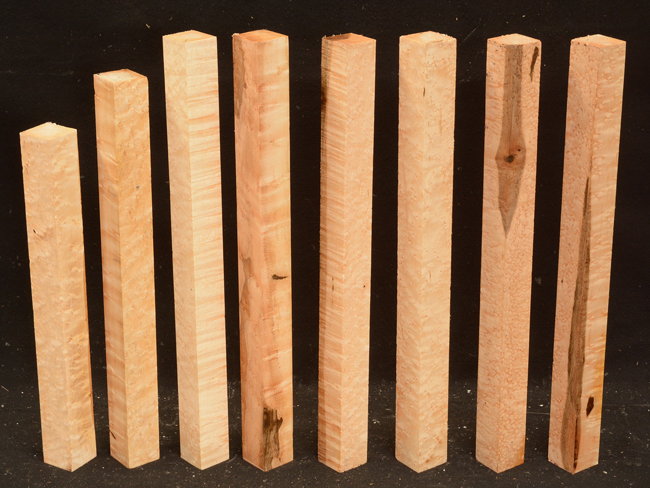 The heartwood is white or cream to light brown or reddish brown. Figured somewhat like that of burl with many small eyes separate from each other. Hard and heavy, 45 lbs/cu ft. Easy to work and takes a smooth polish. U.S.A.