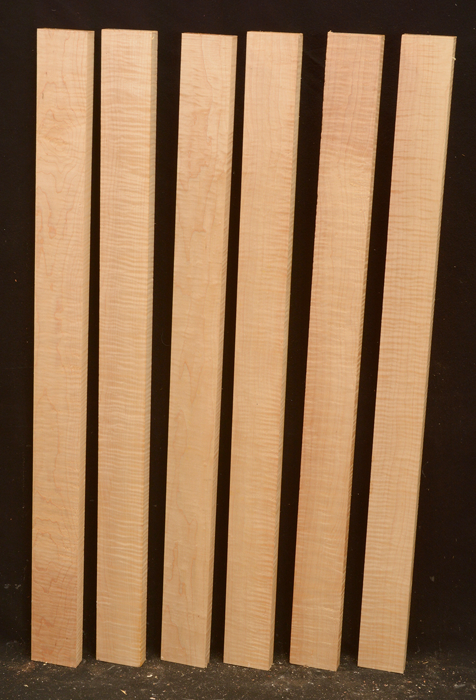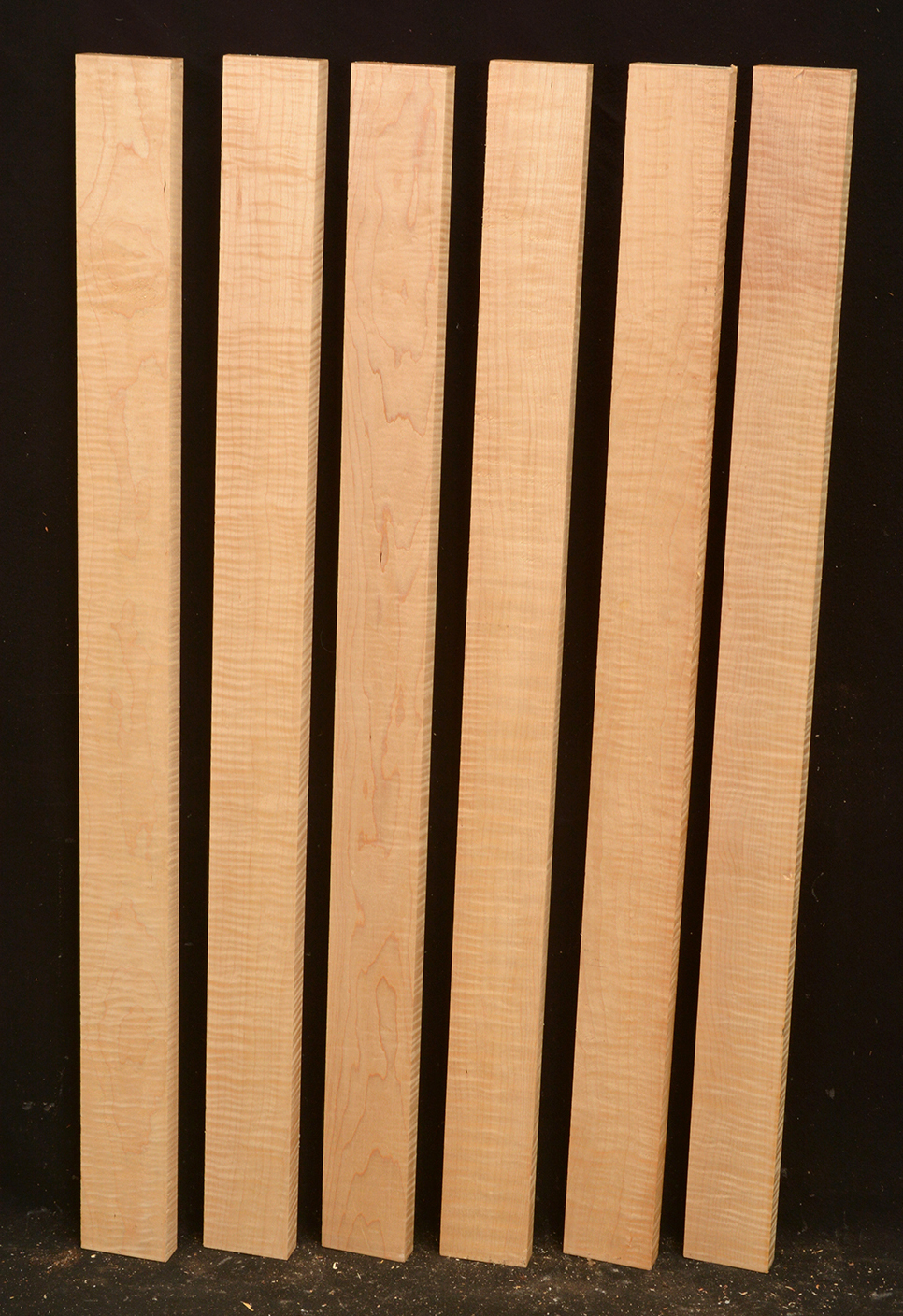 The heartwood is white or cream to light brown or reddish brown. Because of the generally small size of available logs, most sawmills produce flatsawn boards which will show a broken curl on the surface and a fiddleback curl on the quartersawn edge. Hard and heavy, 45 lbs/cu ft. Easy to work and takes a smooth polish. U.S.A.