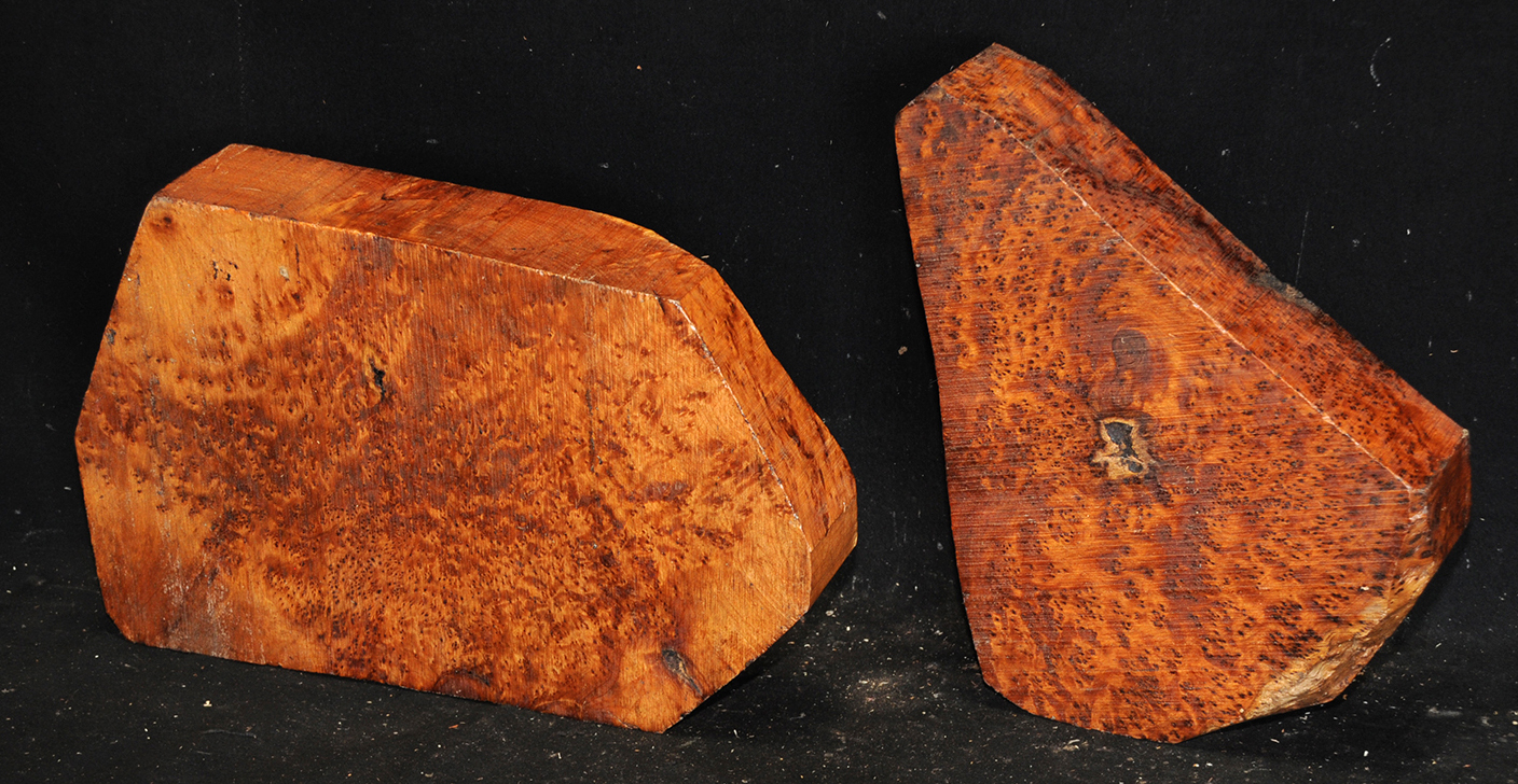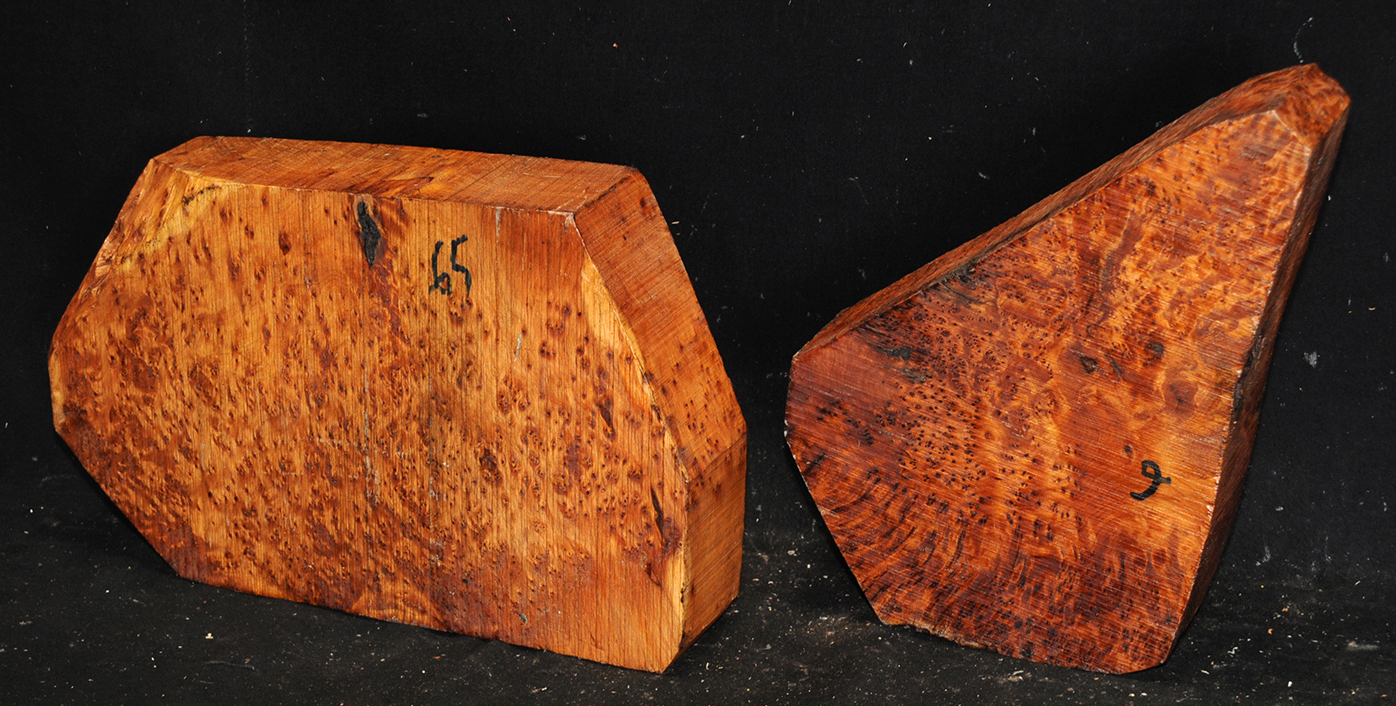 This comes from the Atlas mountains in Morocco and has a beautiful golden chatoyance. Its color varies from a rich, lustrous golden brown to nearly black. Thuya burl is hard and dense with a high oil content, but tends to be brittle. The eyes, perfectly round, are scattered about in some burls like the figure in bird's-eye maple; in others they are grouped as islands. Due to it's desert occurrence, the wood sometimes contains small defects or inclusions but most can be repaired with cyanoacrylate (super) glues. A rare species, this exquisite wood is used for inlays, small boxes, turnery, and precious objects.
