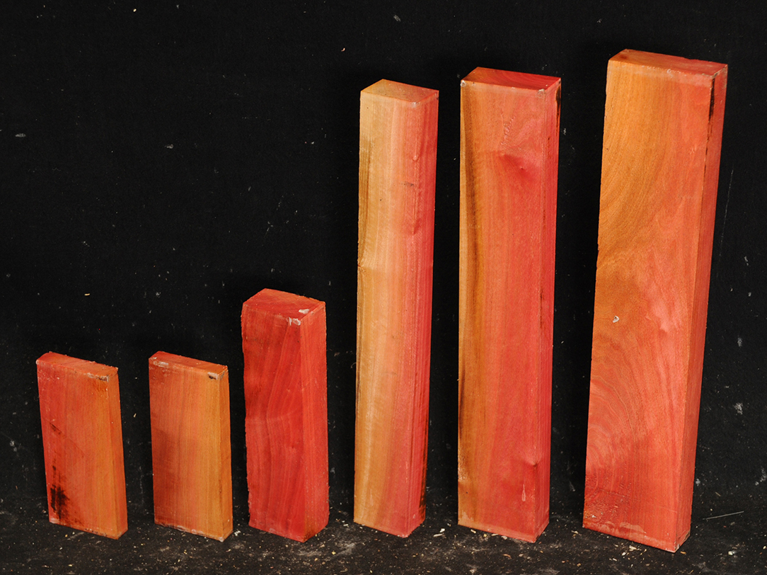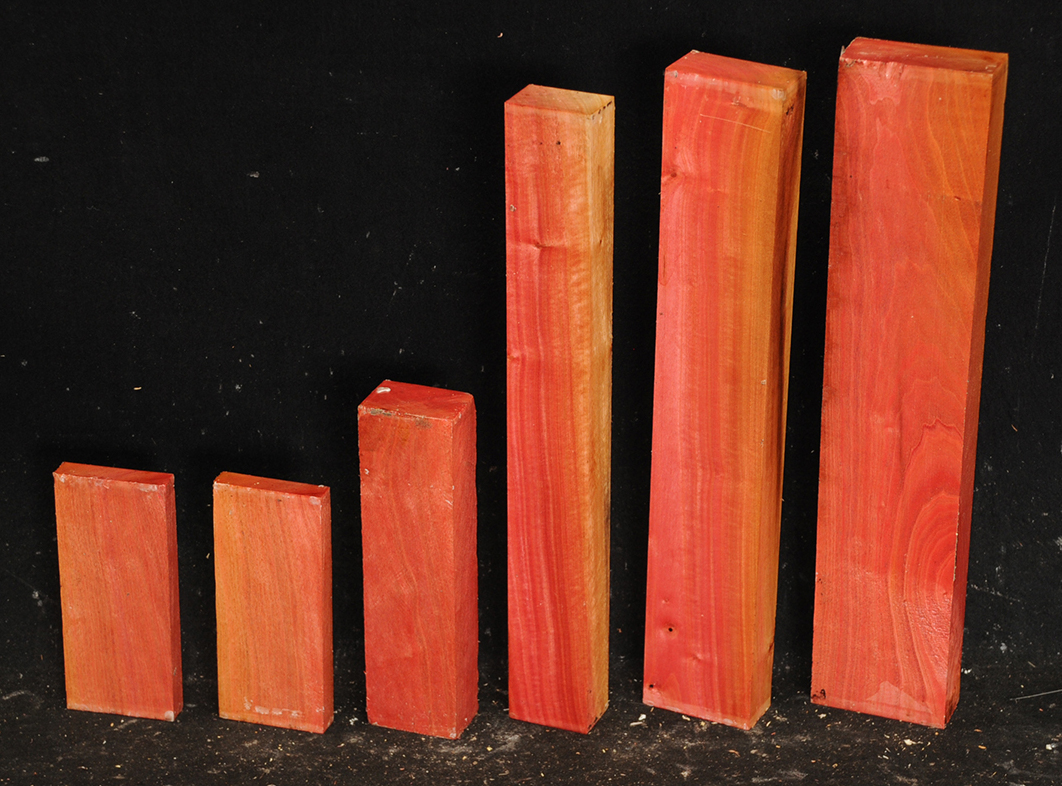 A fairly rare wood from Southern Africa ranging in color from light pink to watermelon red. At one time it was described as being "rarer than diamonds". It is very dense, hard and heavy and takes a very high polish. Beautiful for turnery, inlays and other precious items.