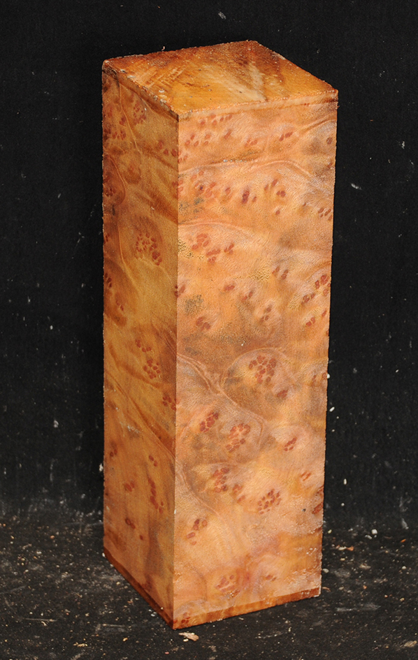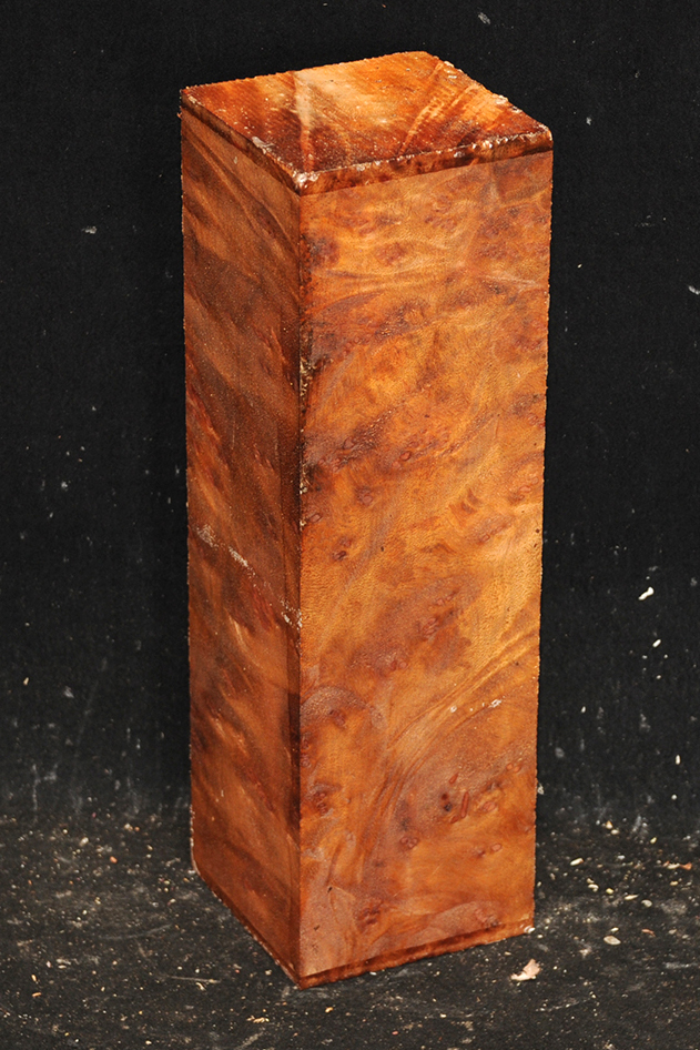 This rare burl is from S.E. Asia and is seldom seen on the world market. It is fine-grained and varies in color from a light reddish-brown to almost scarlet. It is easy to work and has a very pungent, spicy scent. For a burl it is remarkably stable. Green to partially air dried.
