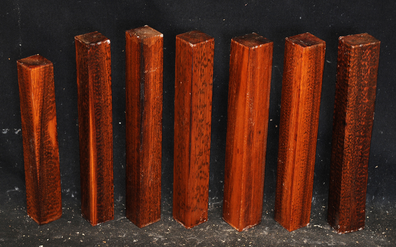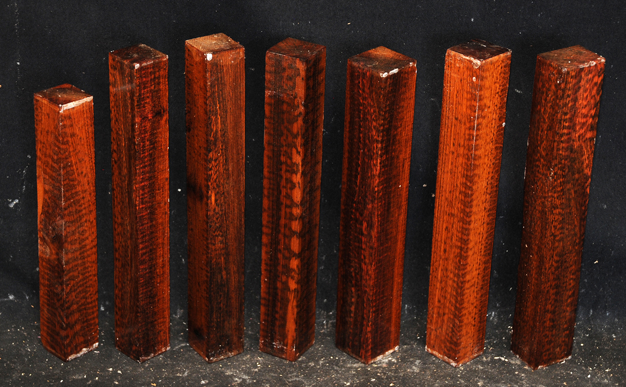 Also called Letterwood and Leopardwood. Color: dark red to reddish brown with irregular black speckles or stripes. Fine textured and highly lustrous. Very hard and heavy, 75-84 lbs/cu ft. Takes a beautiful finish. Very rare and very expensive. Guyana and Surinam.