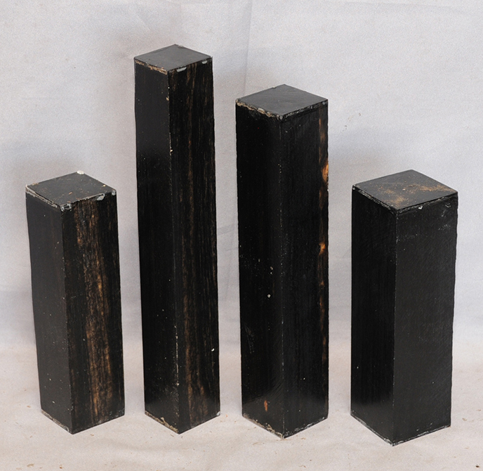 Sometimes called Gabon or Gaboon, this Ebony is sometimes jet black but oftentimes has grayish streaks that mostly disappear when finished or after the made object has been put into service. This Ebony has a marked resistance to checking that is characteristic of some of the Indian and Asian species. It has a wonderful texture and is easily carved, planed, turned, and milled. It is fairly fine-grained and takes a high polish. This Ebony usually originates in either Cameroon or Nigeria and the logs are rough hewn in the forest and oftentimes brought to the nearest road by human porters. With the disappearance of other species of black Ebony this species is fast becoming the Ebony of choice.