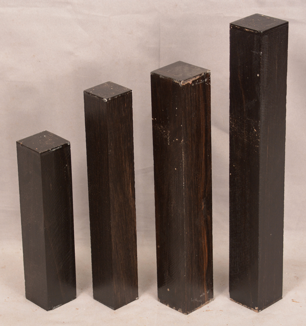Sometimes called Gabon or Gaboon, this Ebony is sometimes jet black but oftentimes has grayish streaks that mostly disappear when finished or after the made object has been put into service. This Ebony has a marked resistance to checking that is characteristic of some of the Indian and Asian species. It has a wonderful texture and is easily carved, planed, turned, and milled. It is fairly fine-grained and takes a high polish. This Ebony usually originates in either Cameroon or Nigeria and the logs are rough hewn in the forest and oftentimes brought to the nearest road by human porters. With the disappearance of other species of black Ebony this species is fast becoming the Ebony of choice.
