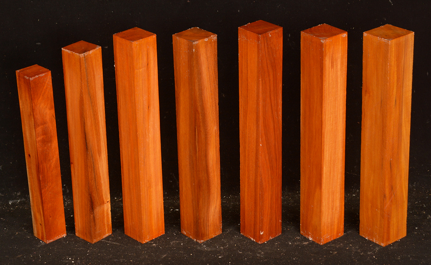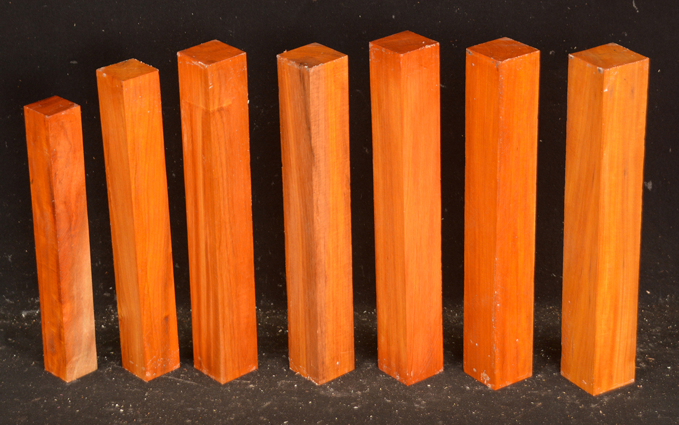 Found in the Yucatan Peninsula in Mexico and related to Pernambuco (Guilandina echinata). It is sought after for house posts in Mexico as it is said to be impervious to termites and other insect pests. It is a lovely light to dark orange color, is fairly hard and heavy, and is capable of taking a very high polish. Rare.