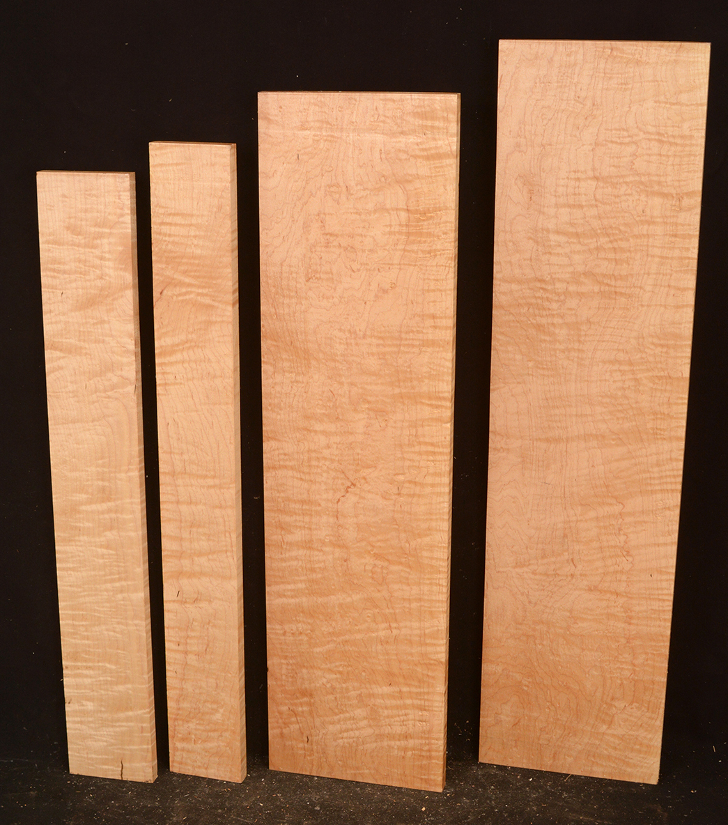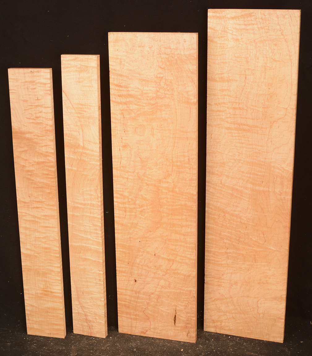 The heartwood is white or cream to light brown or reddish brown. Because of the generally small size of available logs, most sawmills produce flatsawn boards which will show a broken curl on the surface and a fiddleback curl on the quartersawn edge. Hard and heavy, 45 lbs/cu ft. Easy to work and takes a smooth polish. U.S.A.