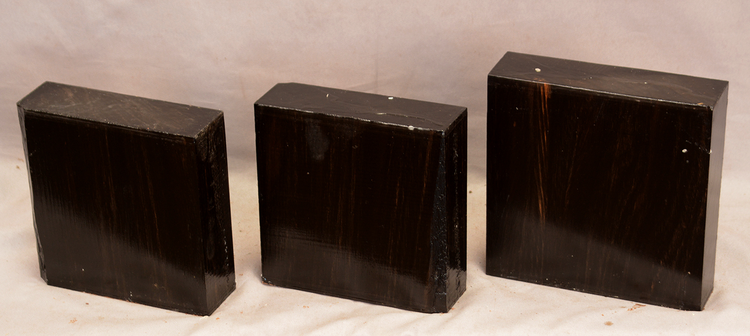 Sometimes called Gabon or Gaboon, this Ebony is sometimes jet black but oftentimes has grayish streaks that mostly disappear when finished or after the made object has been put into service. This Ebony has a marked resistance to checking that is characteristic of some of the Indian and Asian species. It has a wonderful texture and is easily carved, planed, turned, and milled. It is fairly fine-grained and takes a high polish. This Ebony usually originates in either Cameroon or Nigeria and the logs are rough hewn in the forest and oftentimes brought to the nearest road by human porters. With the disappearance of other species of black Ebony this species is fast becoming the Ebony of choice.