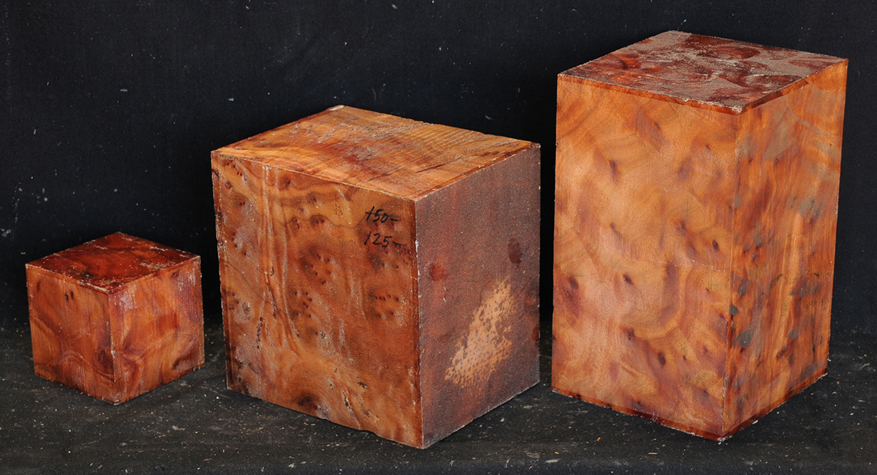 This rare burl is from S.E. Asia and is seldom seen on the world market. It is fine-grained and varies in color from a light reddish-brown to almost scarlet. It is easy to work and has a very pungent, spicy scent. For a burl it is remarkably stable. Green to partially air dried.