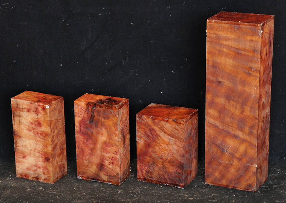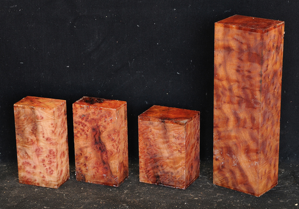 This rare burl is from S.E. Asia and is seldom seen on the world market. It is fine-grained and varies in color from a light reddish-brown to almost scarlet. It is easy to work and has a very pungent, spicy scent. For a burl it is remarkably stable. Green to partially air dried.