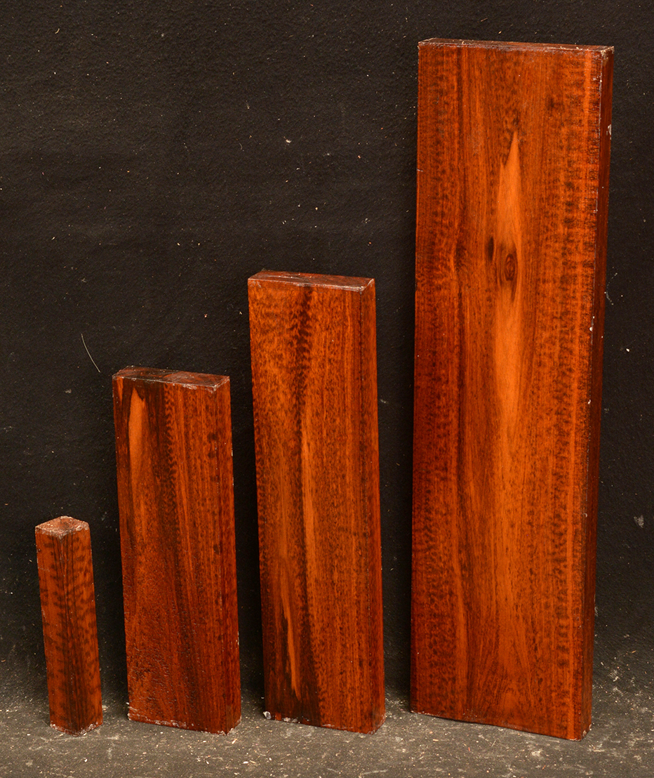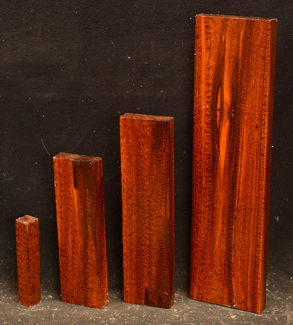Also called Letterwood and Leopardwood. Color: dark red to reddish brown with irregular black speckles or stripes. Fine textured and highly lustrous. Very hard and heavy, 75-84 lbs/cu ft. Takes a beautiful finish. Very rare and very expensive. Guyana and Surinam.