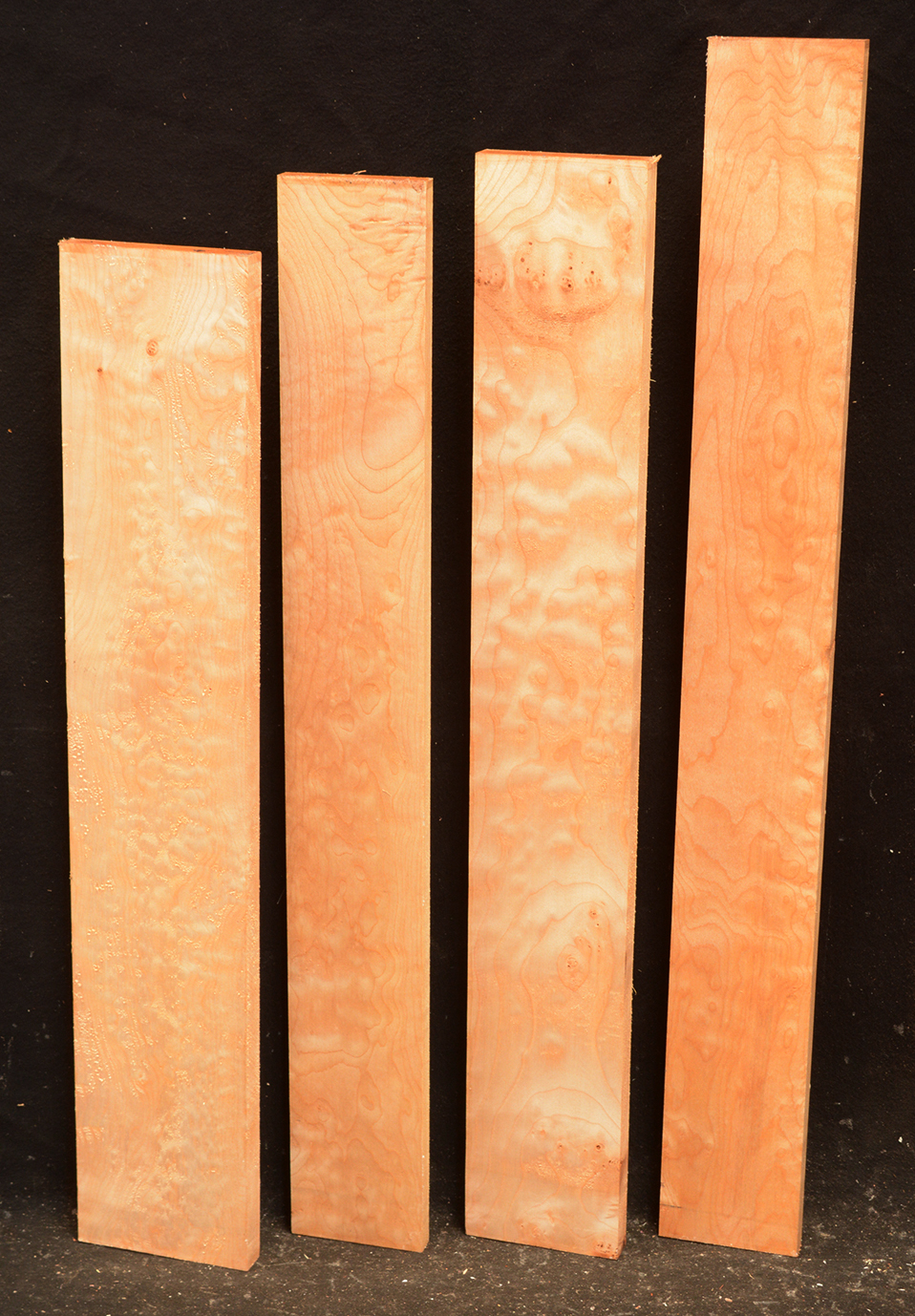 This tree is native to the Pacific Northwest. It has the distinction of having the largest leaf of the Maples-up to 15" in diameter. This is a soft Maple. The tree can produce many different types of figure, including quilted (tubular, popcorn, & cloud), curly (fiddleback, broken, & basketweave), and burl.
