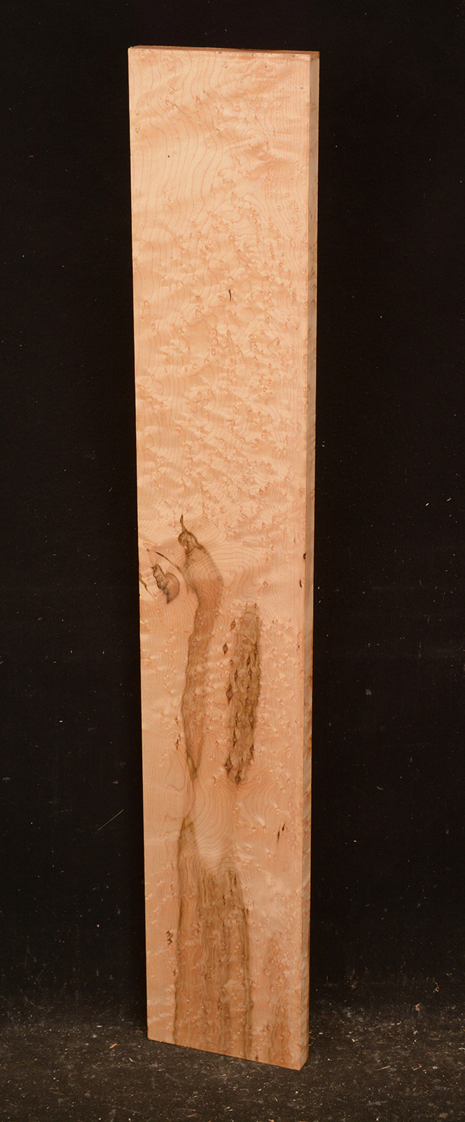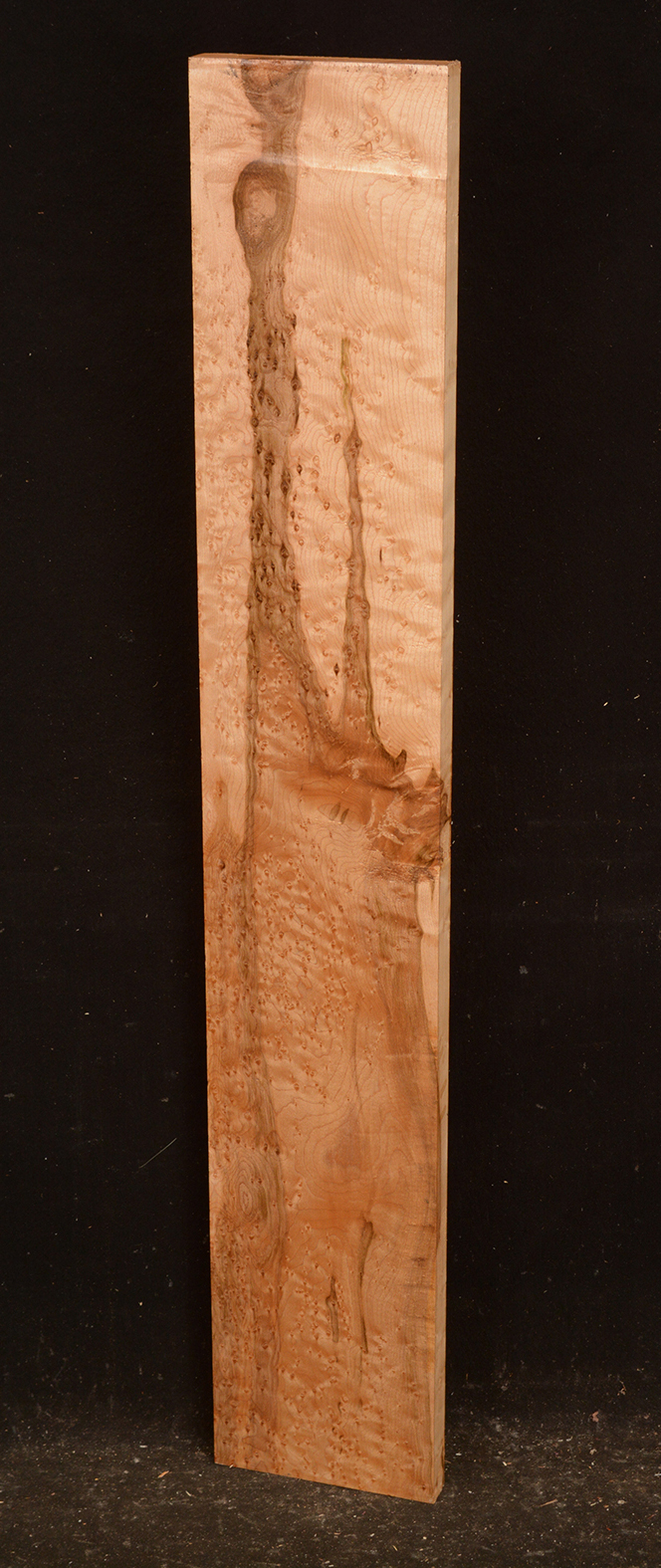 The heartwood is white or cream to light brown or reddish brown. Figured somewhat like that of burl with many small eyes separate from each other. Hard and heavy, 45 lbs/cu ft. Easy to work and takes a smooth polish. U.S.A.