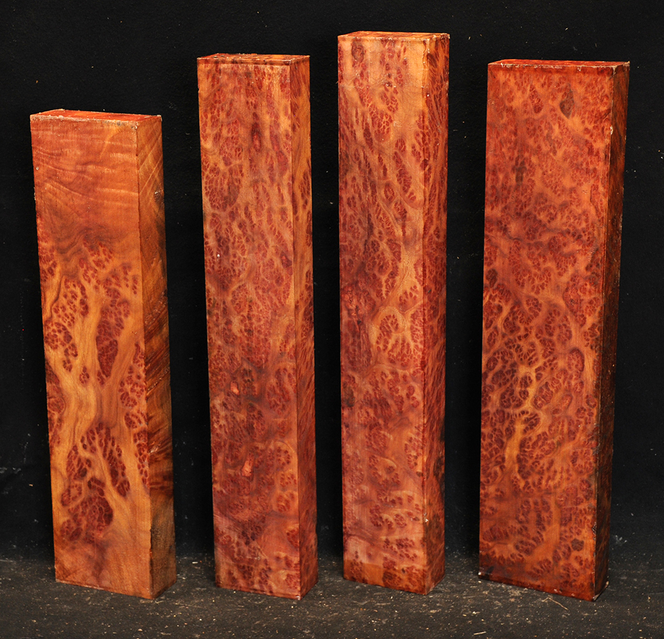 This rare burl is from S.E. Asia and is seldom seen on the world market. It is fine-grained and varies in color from a light reddish-brown to almost scarlet. It is easy to work and has a very pungent, spicy scent. For a burl it is remarkably stable. Green to partially air dried.
